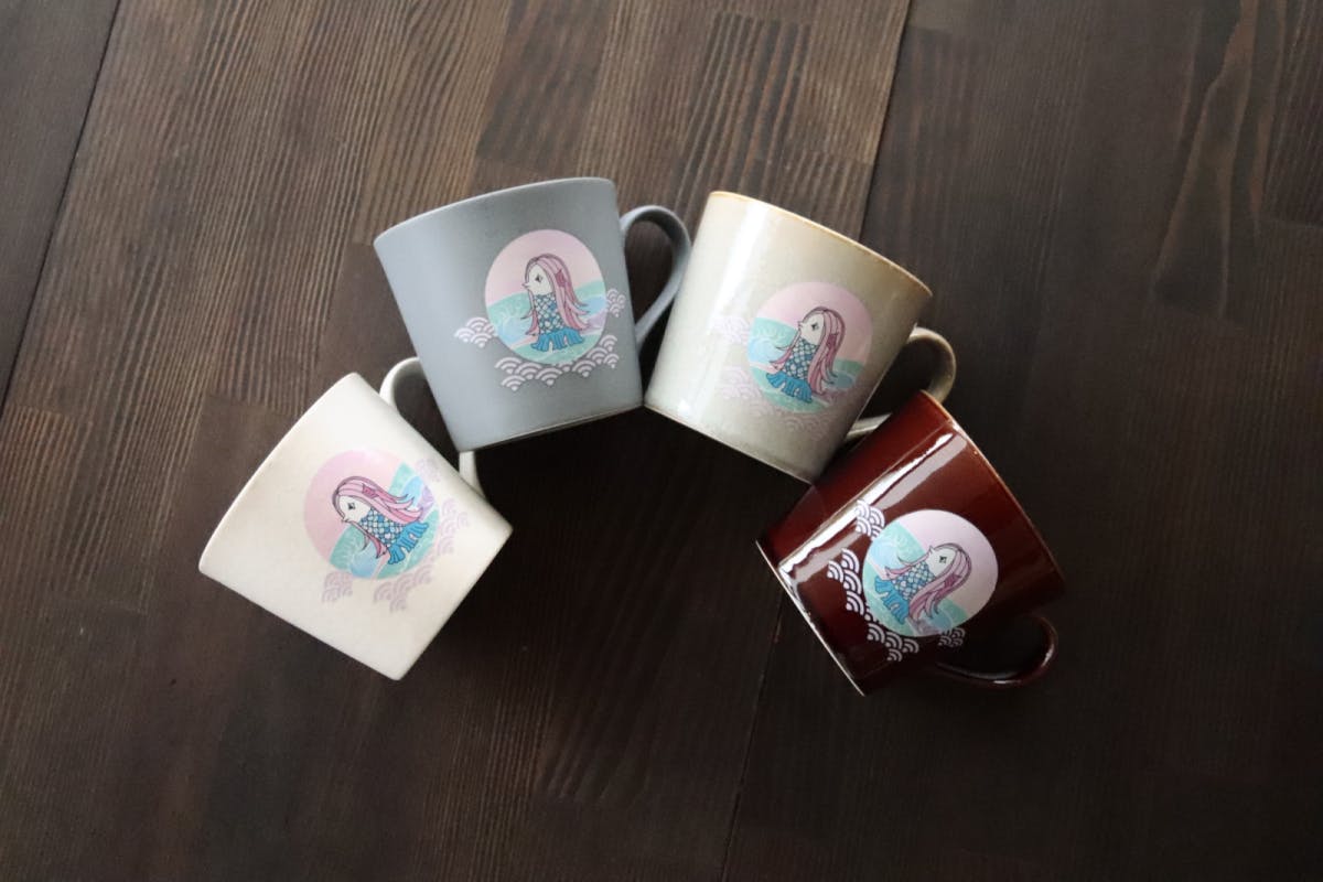 ◆温度で変化するアマビエマグカップ(4色セット)+専用化粧箱付