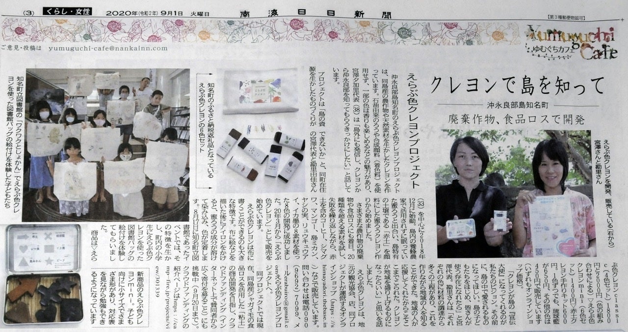 今朝の南海日日新聞にて、えらぶ色クレヨンプロジェクトの活動を大きく取り上げていただきました!
