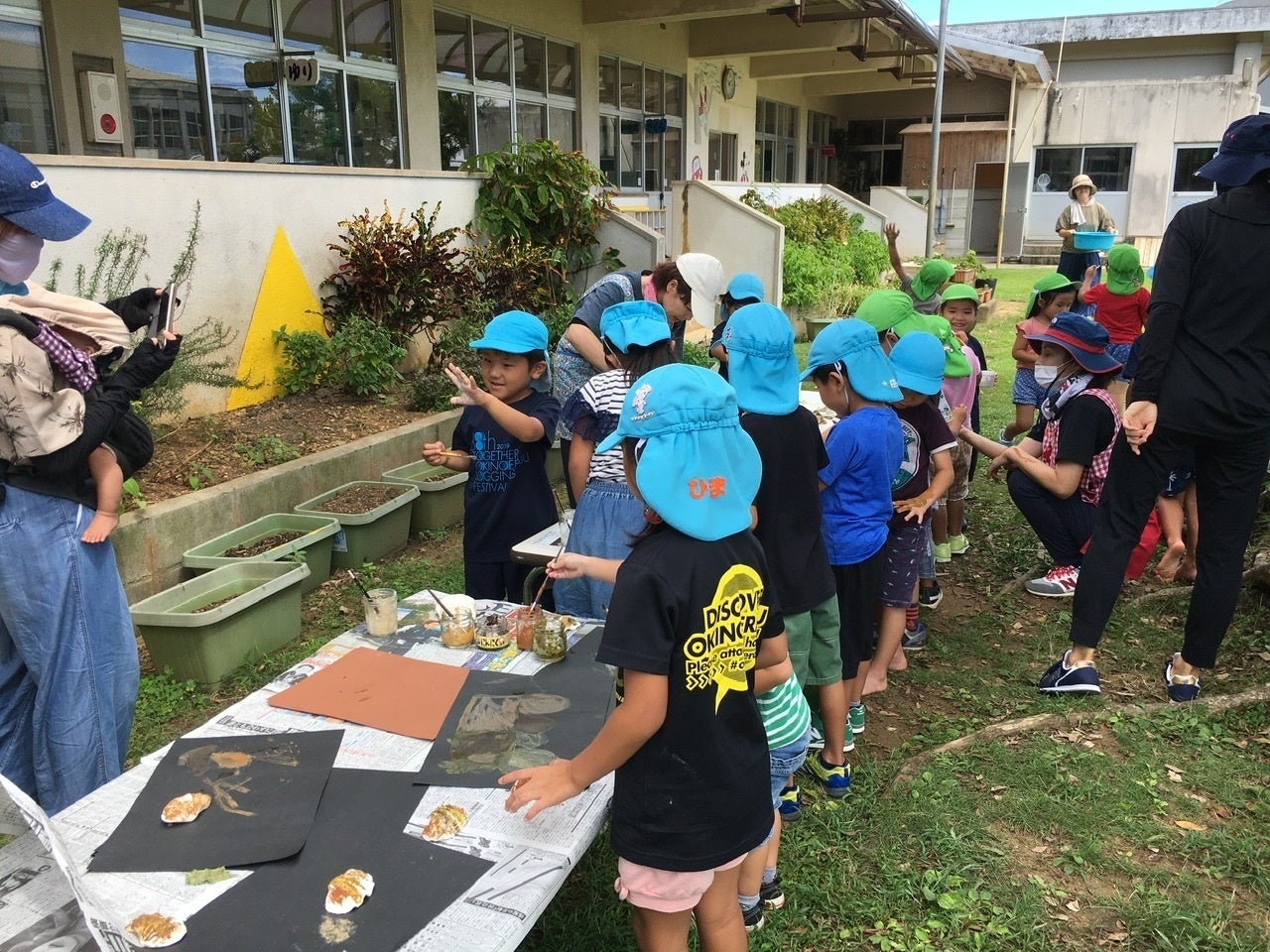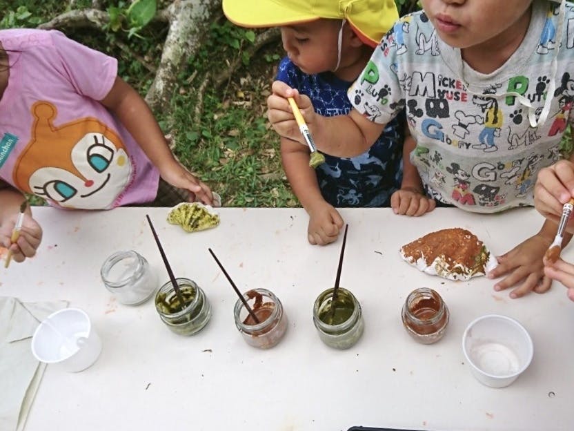 さて先日、和泊町の幼稚園からご依頼いただき、「えらぶ色の天然絵の具」を使ったワークショップをさせていただきました。