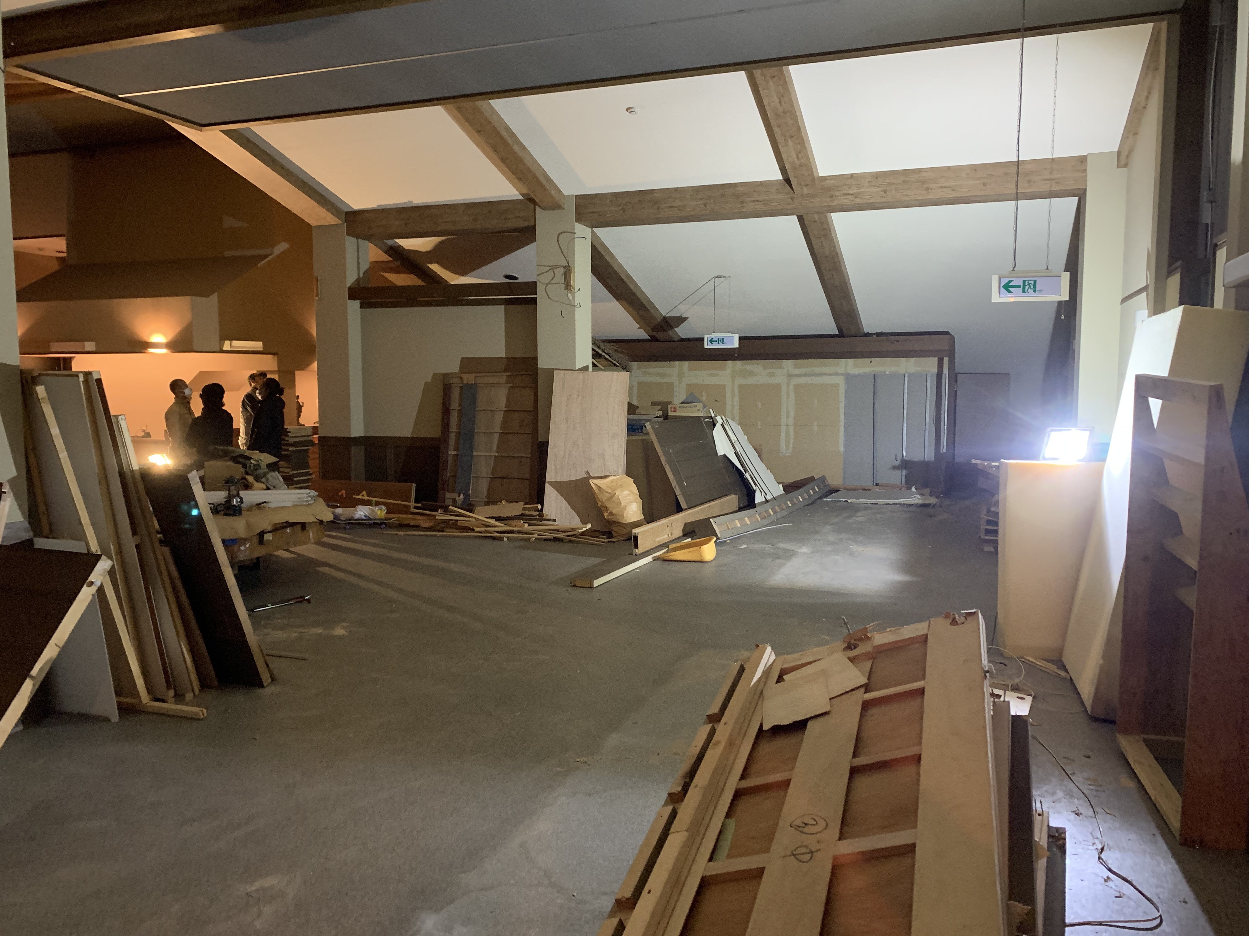 現在、元は資料館であったフロア内の巨大な什器の解体作業をしています。