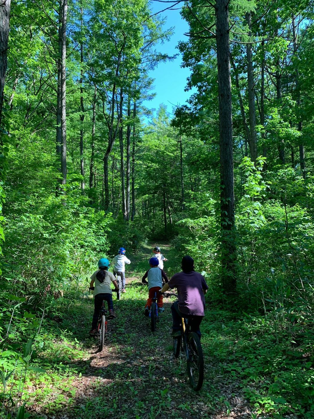 町内のやすらぎの森オートキャンプ場内の荒れた森を切り開きMTBコースを整備。