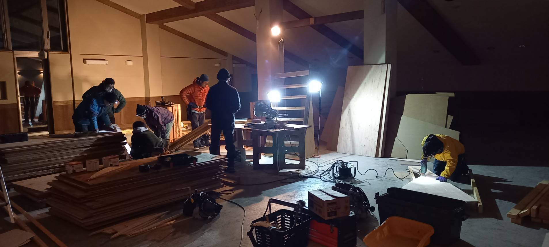 火曜と木曜の夜に集まって作業しているのですが、こんな感じで暗い中作業しています。