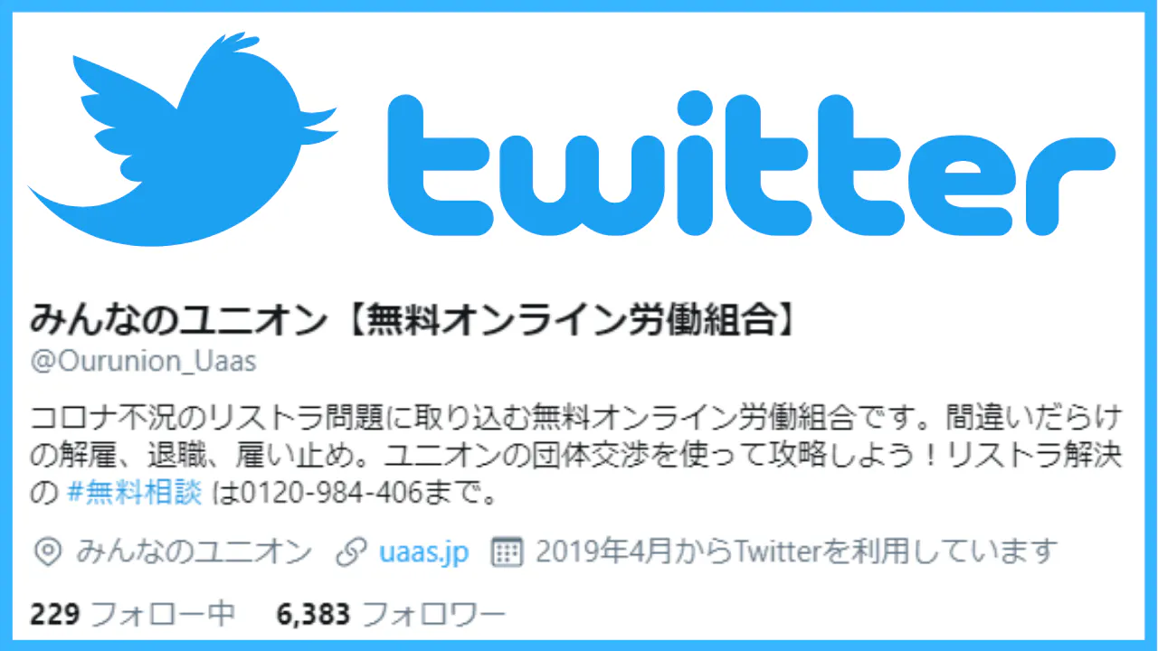 約6400人のフォロワーがいる、みんなのユニオン公式Twitterで【希望者のお名前】等を紹介させていただきます!