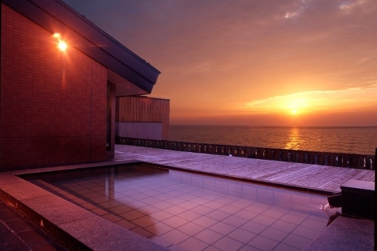 日本海を一望する瀬波温泉の源泉の香りがふわっと香る磐舟自慢の露天風呂で皆様をお迎えしたく思っております。