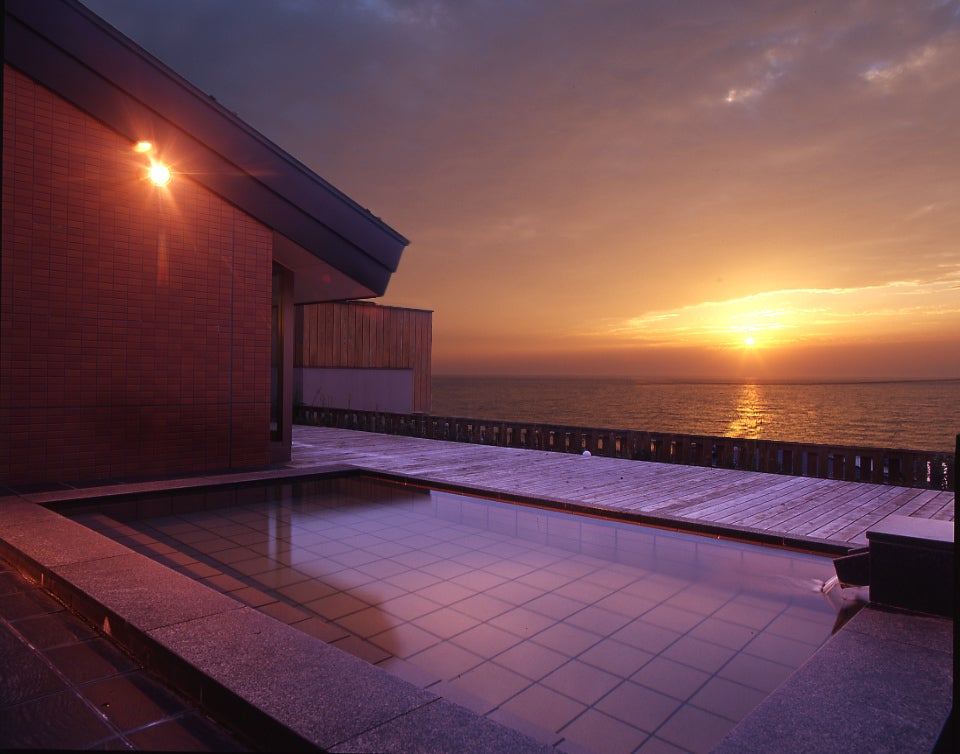 日本海を一望する瀬波温泉の源泉の香りがふわっと香る磐舟自慢の露天風呂で皆様をお迎えしたく思っております。
