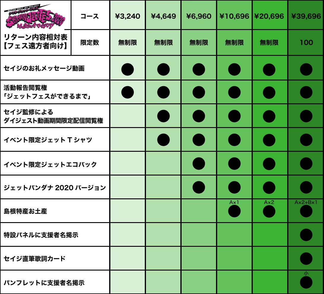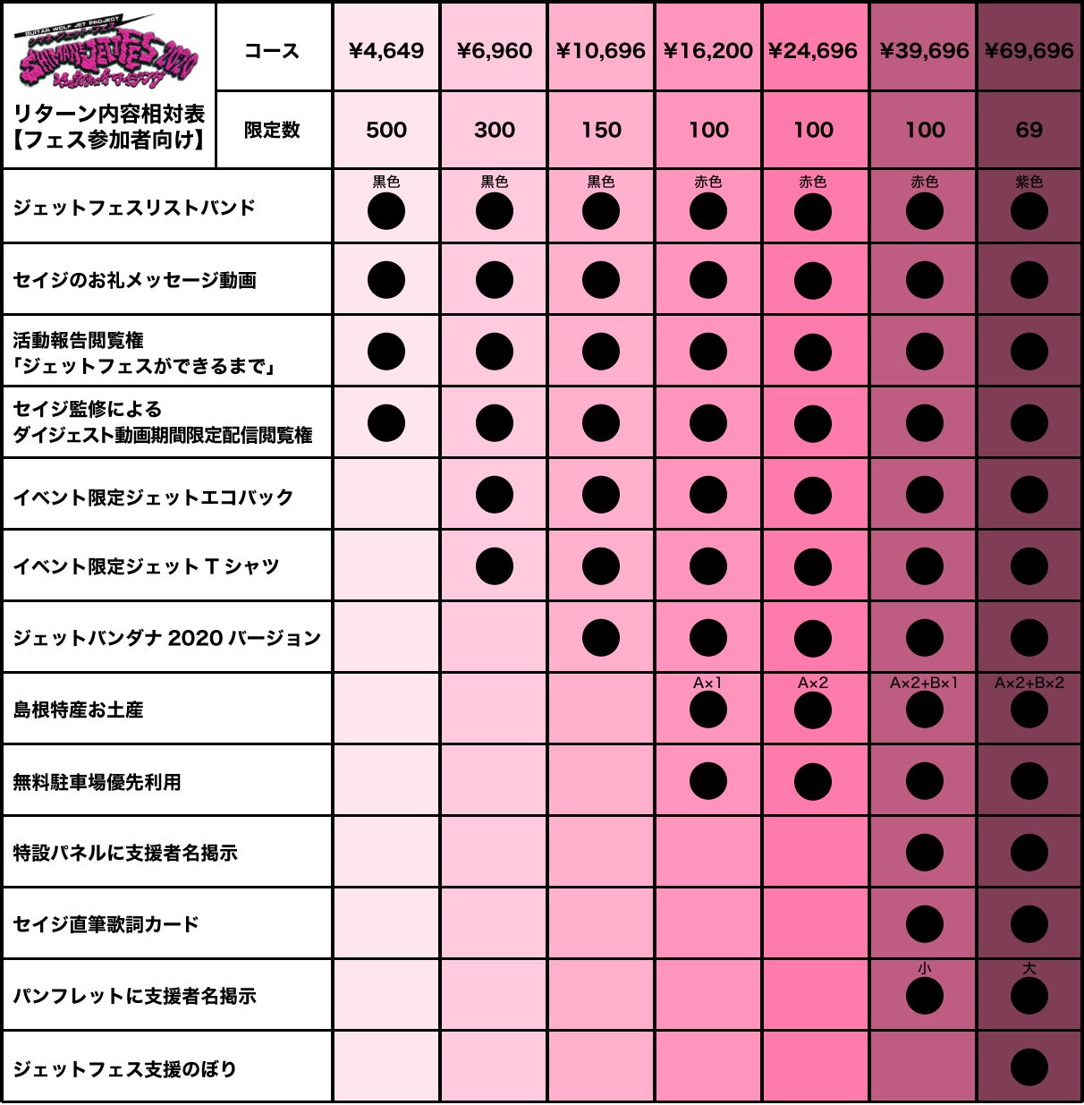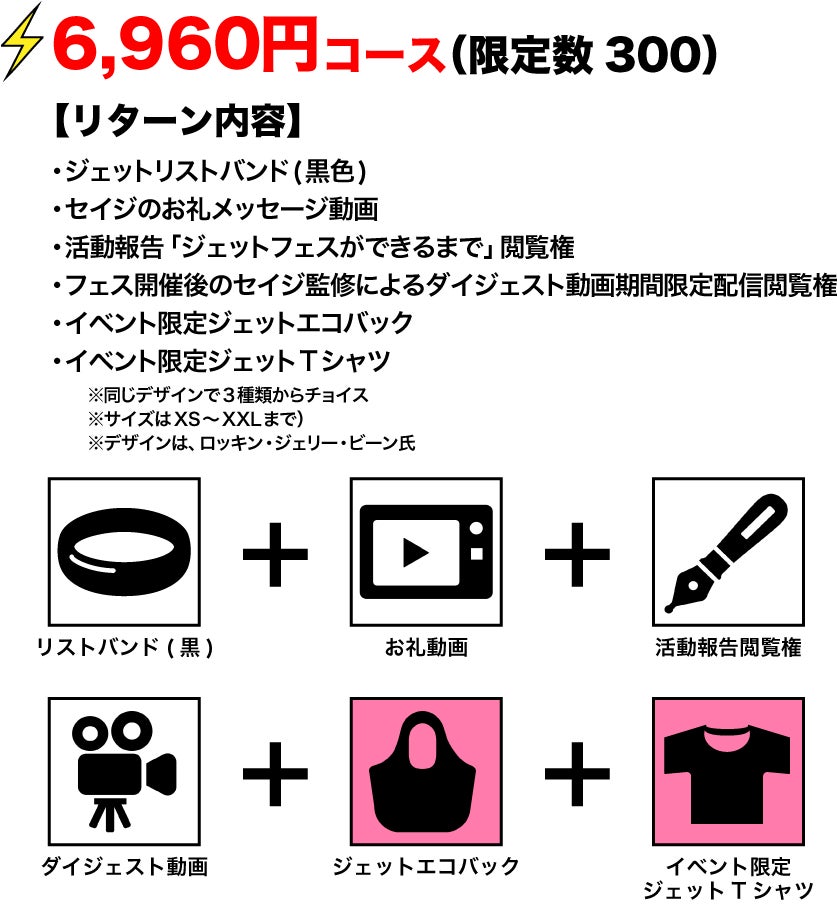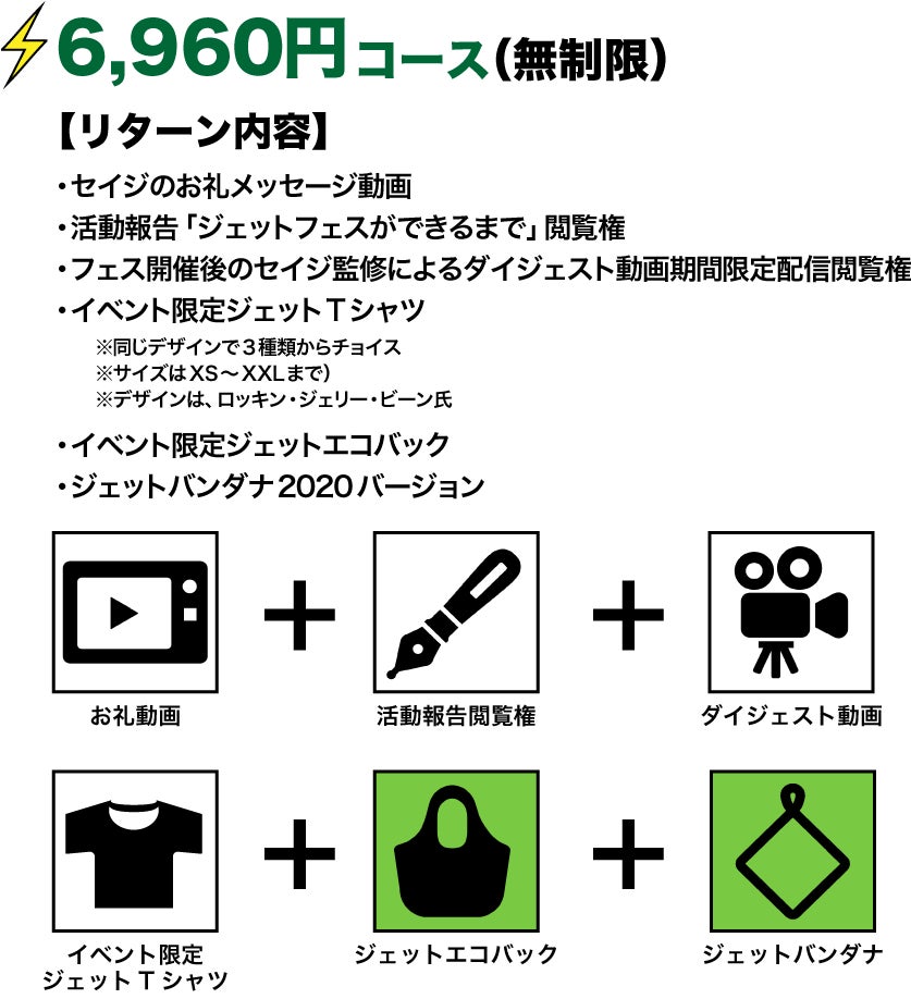 また、全体の詳しいリターン内容は「ジェットフェス2020リターン品説明」をご覧ください。