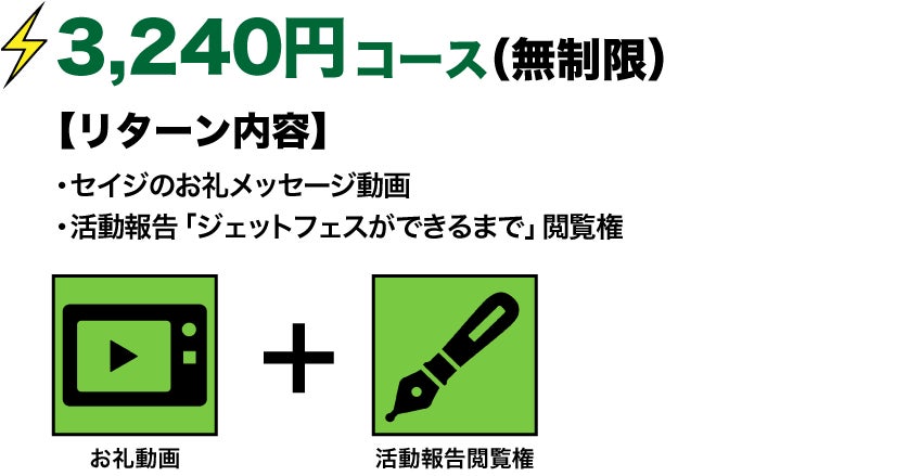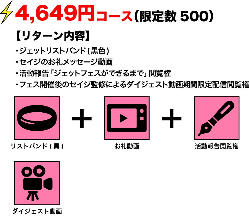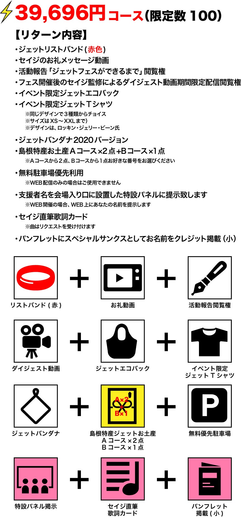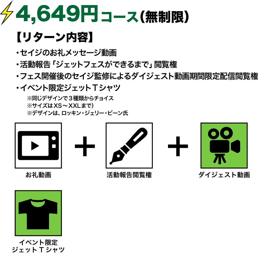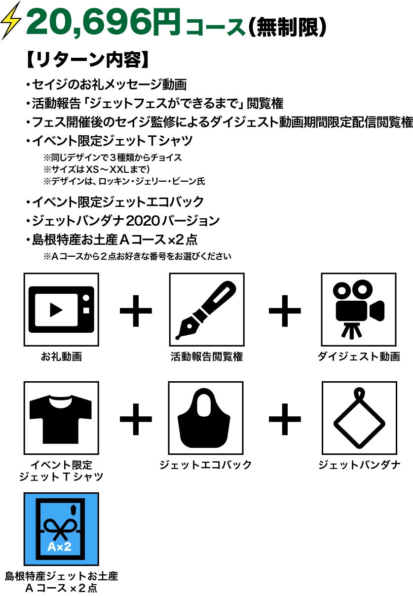 また、全体の詳しいリターン内容は「ジェットフェス2020リターン品説明」をご覧ください。