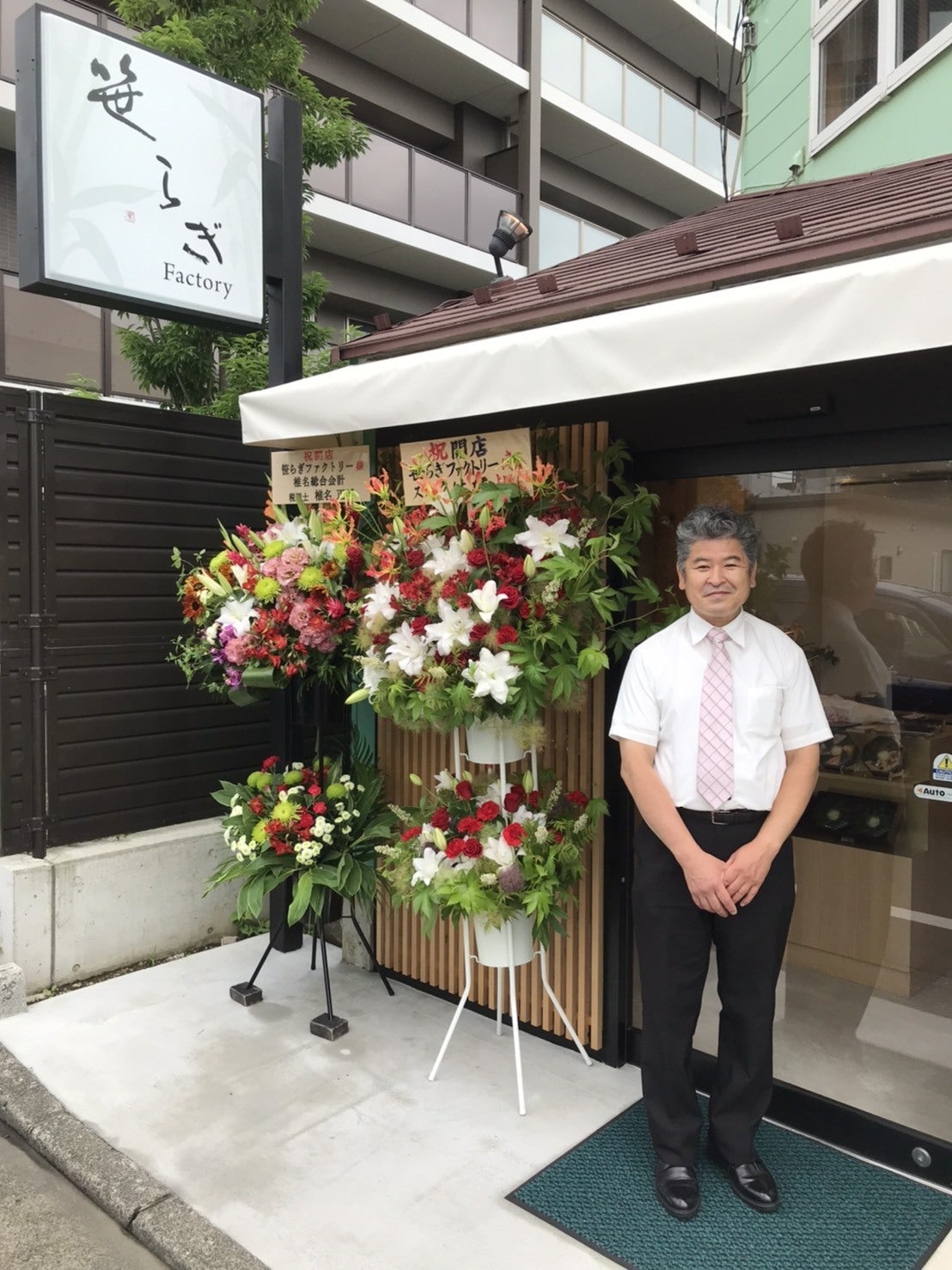 ●感謝の気持ちを込めて、笹らぎの店舗にお名前の入ったネームボードを飾らせていただき、