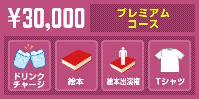 じゅんじゅんがお礼の飲み会を開き、完成した絵本2冊と出演シーンのTシャツを手に入れることができるコースです。