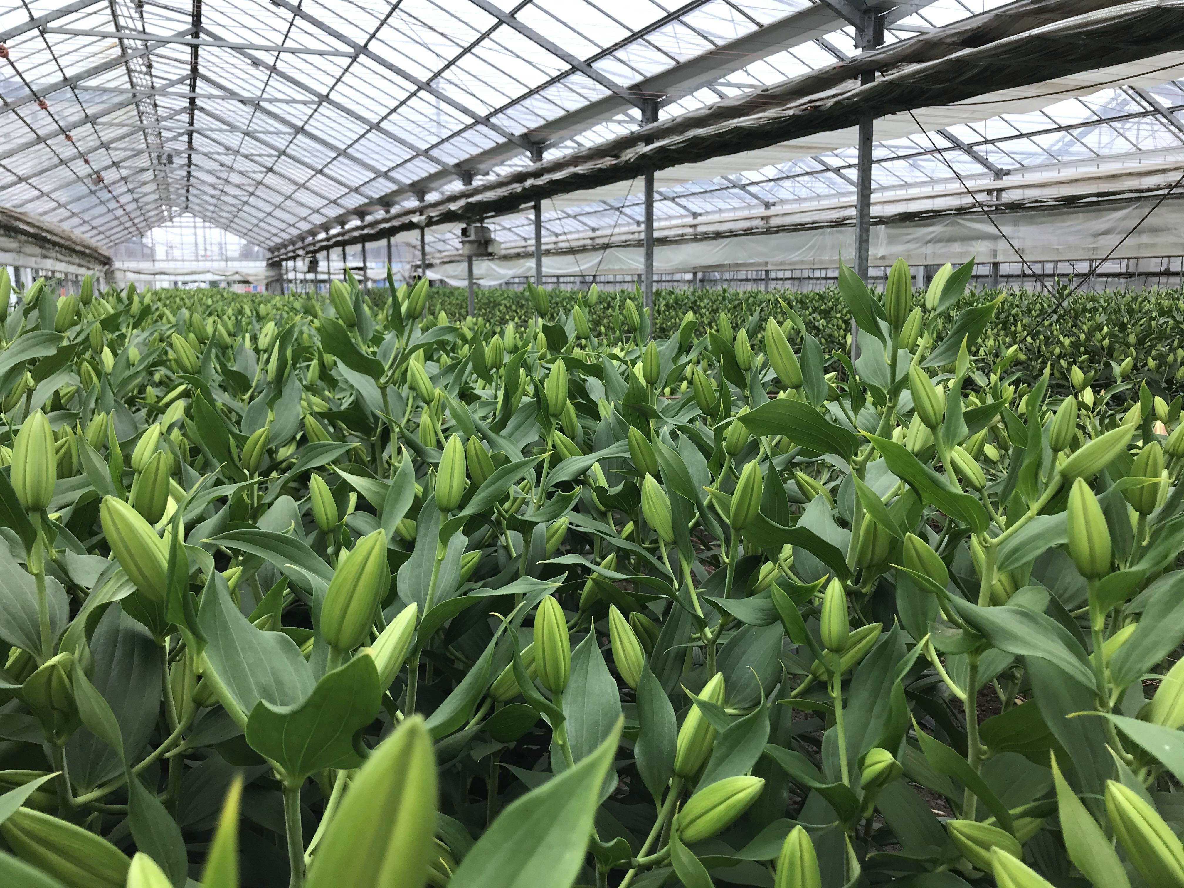 ユリの原産地は主にアジアで、日本の野生品種が多く、それをヨーロッパで掛け合わせて、より大きく、美しく、強い品種に改良して、その球根を日本に逆輸入して栽培しています。
