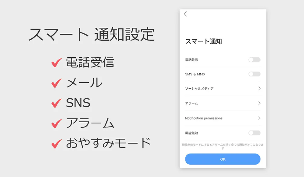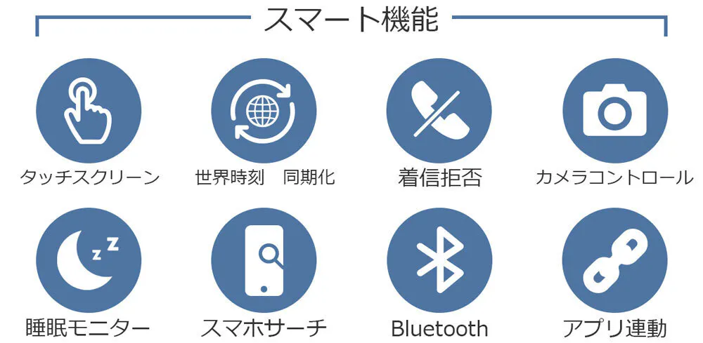 はい。ミュージックコントロール、カメラリモートコントロール、各種のアラーム、電話着信の拒否また睡眠モニター機能などを提供します。