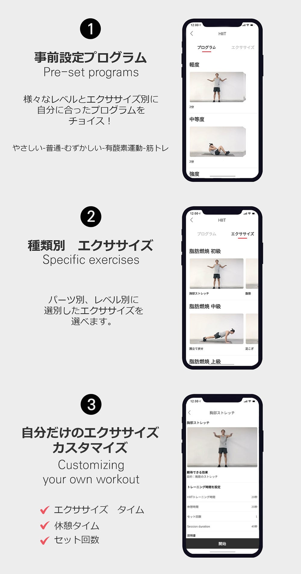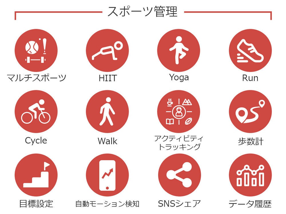 既存のスマートワッチでよく使える万歩計、ランニング、サイクルに対する活動量分析はもちろんHIIT( 高強度インターバルトレーニング)とヨガに対するトレーニングプログラムを提供します。