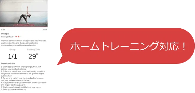 MATE2+スマートウォッチはおうちでも体系にヨガトレーニングをしてくれます。アプリの中、動画を見ながらウィッチの振動アラームでヨガを学びましょう。