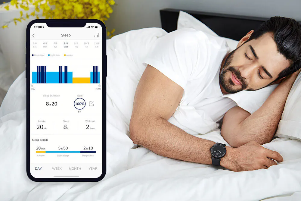 MATE2+の活動センサーは睡眠状態を自動的に記録します。デイリー、ウィークリー、マンスリーおよび年度別で整理し、一目で自分の睡眠グラフを把握することで健康的な睡眠をサポートします。