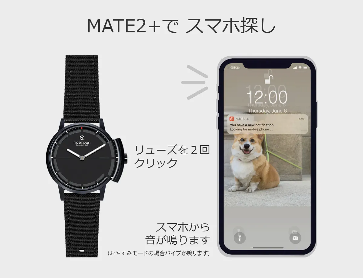 スマホをどこに置いたか忘れてしまうことありませんか?時計のボタン(リューズ)を押すと携帯が鳴り、スマホを簡単に探すことができます。