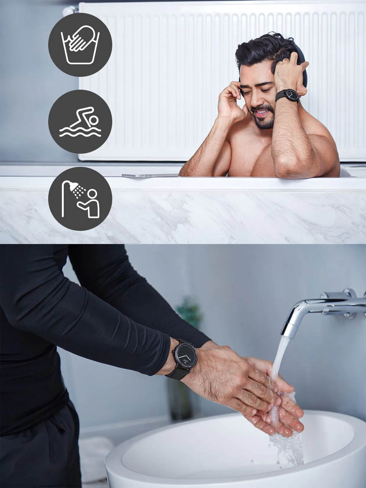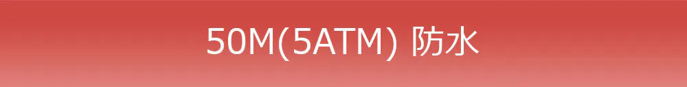 水圧5bar、最大50mの水深でも防水が可能な5ATM設計で日常生活ではもちろん、水上スキー等のマリンスポーツも楽しんでお使いいただけます。