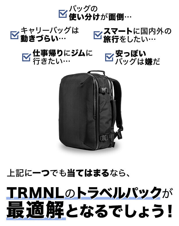ロサンゼルス発の新鋭ブランドTRMNL(ターミナル)のバックパックが登場です。