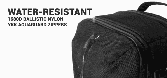 防水仕様&止水ジッパーで、突然の雨にも心配はいりません。