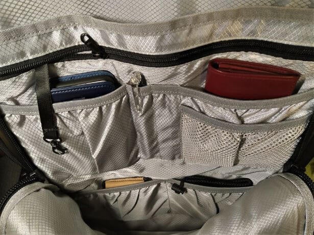 TRMNLトラベルパックは、大きく6つの収納スペースとポケットに分類されます。
