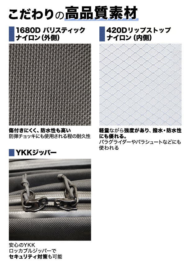 いずれも耐久性がある素材を使い、高品質なボディに仕上がっています。