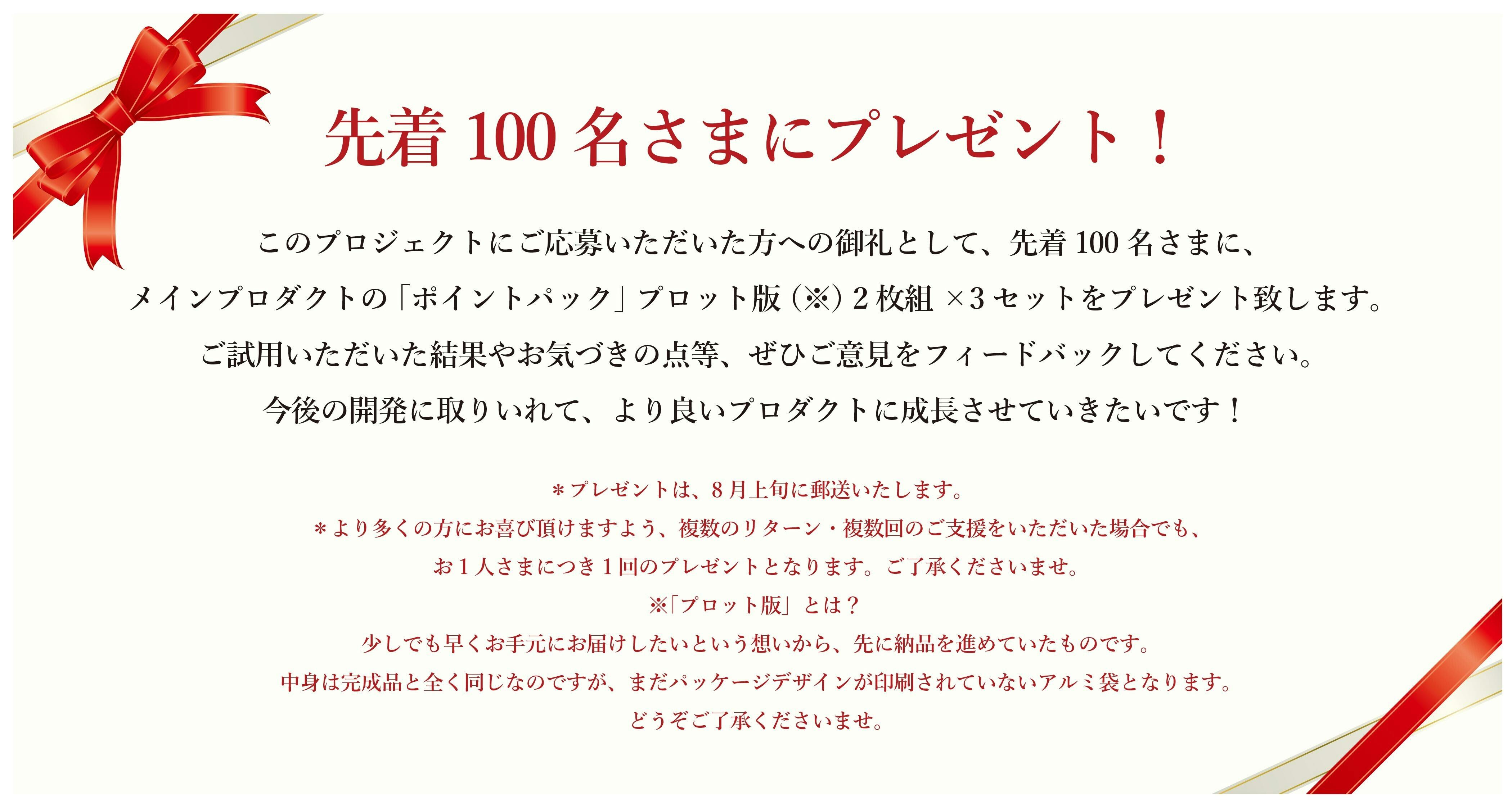 このプロジェクトにご応募いただいた方への御礼として、先着100名さまに、メインプロダクトの「ポイントパック」プロット版(※)2枚組×3セットをプレゼント致します。