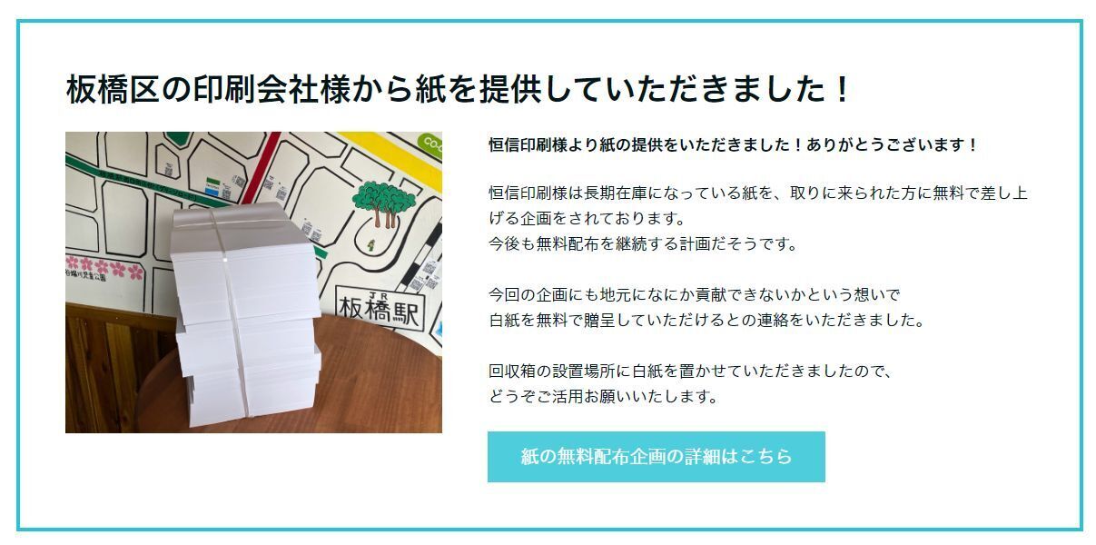 こちらも板橋区の恒信印刷さんから紙を提供していただいております!