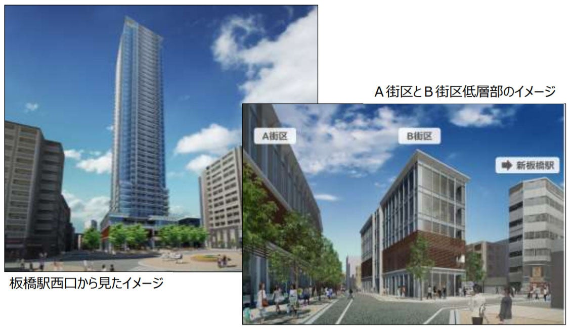 板橋駅舎の再整備にあわせて、板橋駅西口の駅前広場に面する二つの街区で超高層ビルの再開発が進んでいます。