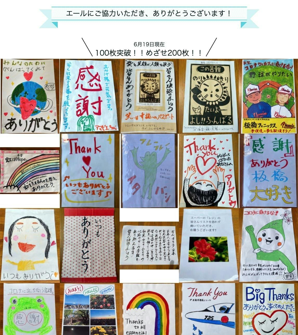 2020/08/04 06:00みなさまのご支援のおかげで、目標額を達成致しました。ありがとうございます!!目標額に達成しましたが、当初想定よりも多くのエールを頂き冊子印刷費がふくらむことや、エールをより多くの方々にお届けするため、、、、ストレッチゴールを15万円に設定!トライしたいと思います!皆様のご支援によって、より多くの頑張っている方々へエールをお届けすることができます!なので、お知り合いの方々への拡散、引き続きよろしくお願いいたします。エールの募集につきましても、当初予定の200枚を大きく超え、250枚程のエールを頂きました!こちらも本当に、ありがとうございます!!8月1日に残念ながら、エールを板橋駅から撤去することとなってしまいましたが、今後は板橋区役所の展示スペース(1階と7階)に一部展示していただけることとなりました!!↑ 回収したたくさんのエールです!ありがとうございます。エール撤去の様子は勝手にイタバシ会議vol.7にてご覧いただけます。ぜひ、ご覧ください☆【お知らせ】本日!! 8月4日(火)の18時からJ:COMさんに取材いただいた内容が放送されます!!そちらもぜひ、ご覧ください! もっと見る