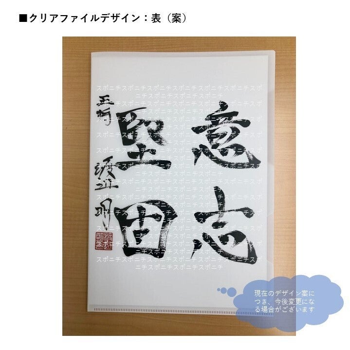本日はチラ見せ企画第2弾といたしまして、リターン品のひとつ「揮毫入りクリアファイル」デザイン(案)を公開します!