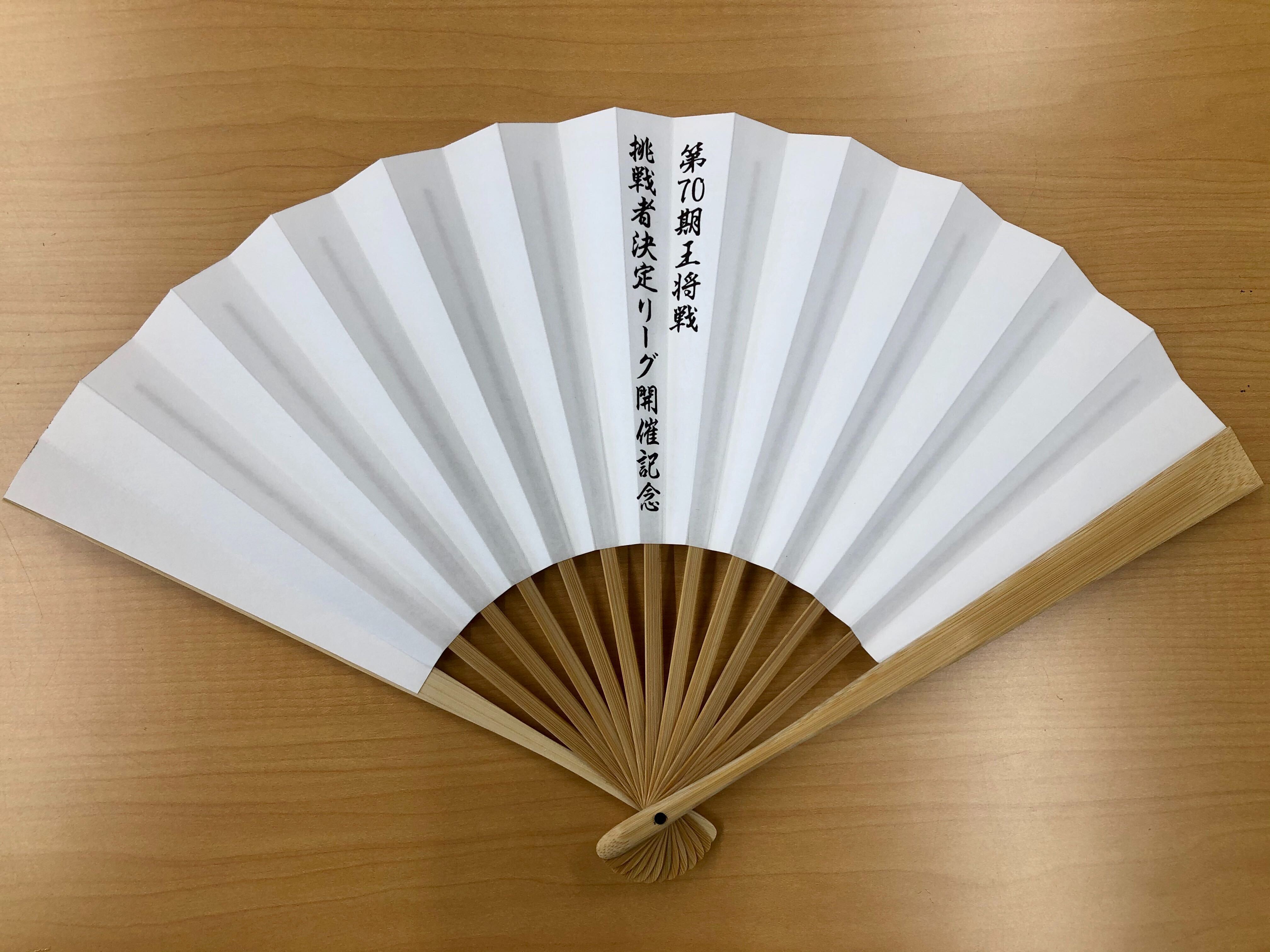 さて、本日はチラ見せ企画第3弾といたしまして、リターン品のひとつ「渡辺王将+王将リーグ参加者直筆揮毫入り扇子」の揮毫前の白扇をお見せいたします!
