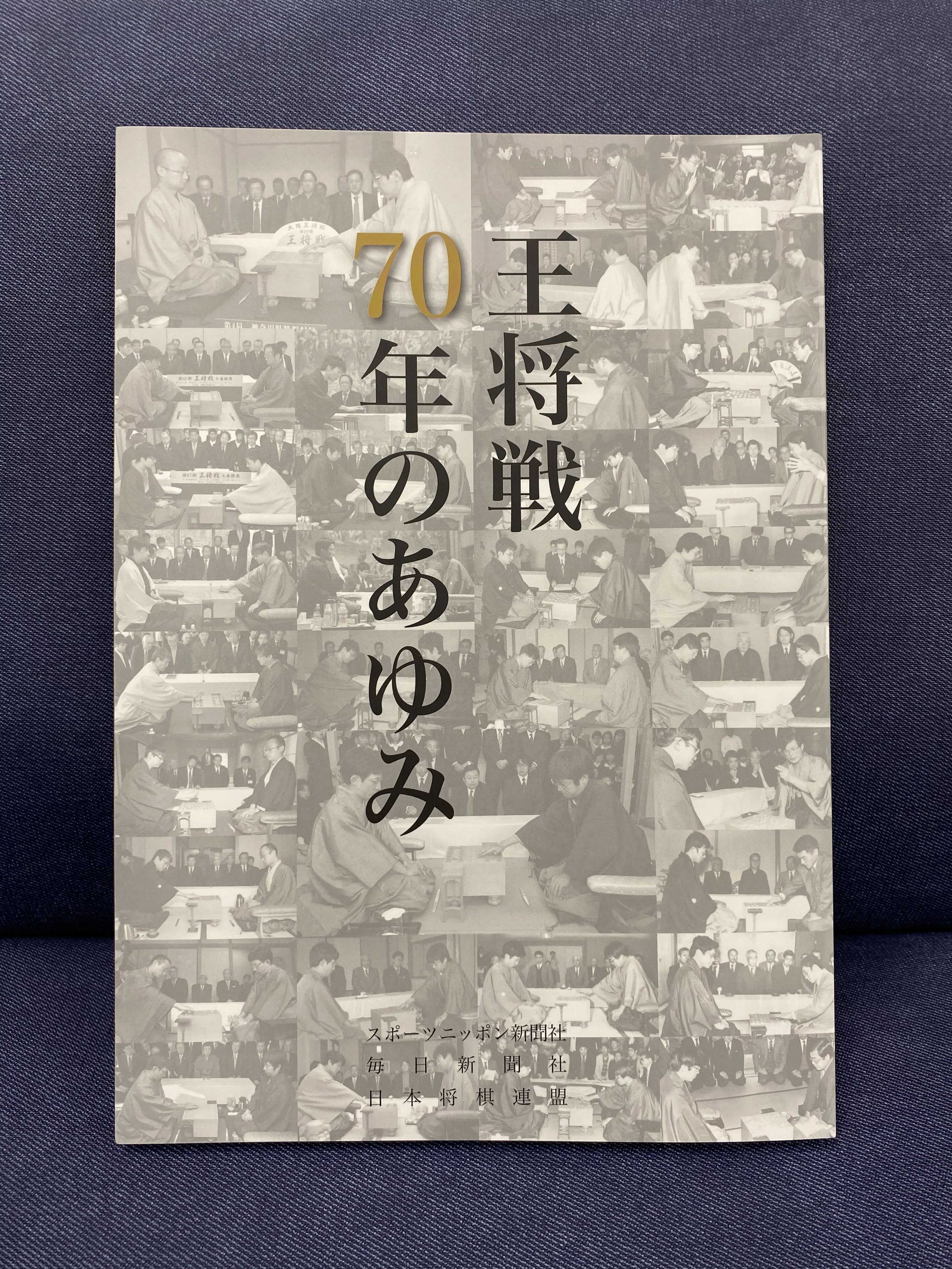 本日は「王将戦70年のあゆみ」本誌及び、リターン品「王将戦オリジナルフォトブック」 、「歴代王将16人のお名前入りオリジナル扇子」、 「揮毫入りクリアファイル」が完成しましたことをご報告させていただきます。