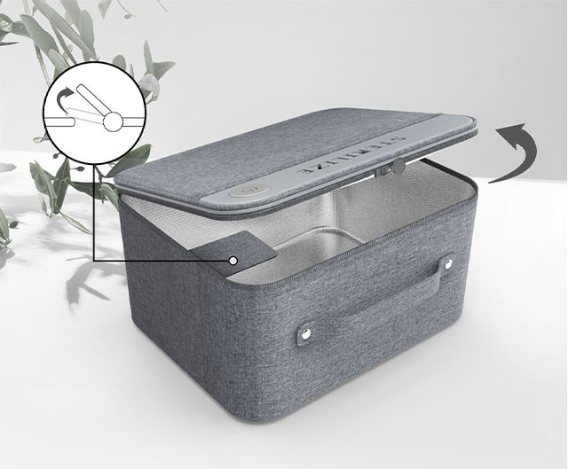 サンステラー(SUNstera)の使い方はカンタン、除菌したいものをバックに入れてボタンを押すだけ。