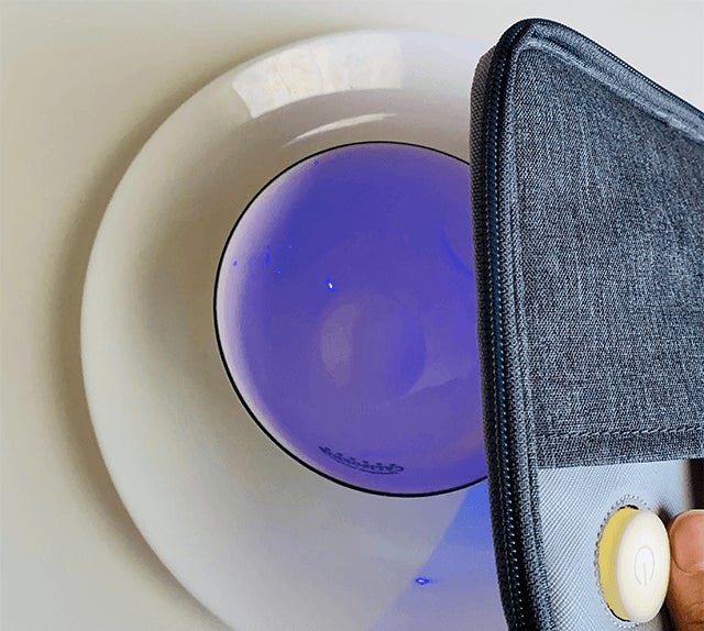 除菌をするために、アルコールや薬剤を使わず、UVCライト(紫外線の光)だけで除菌します。