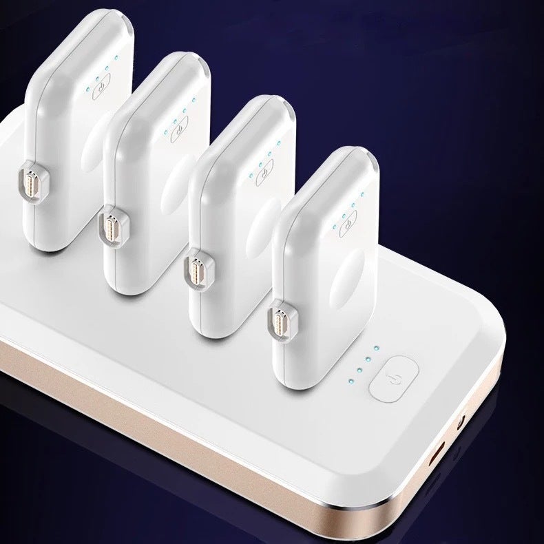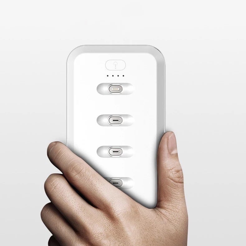 なのでこの小さい子バッテリー二個を持ち歩くだけで満充電+半充電までできる計算になります。一日に外出先で満充電を何回も繰り返す方はそう相違ないと思います。さらに子バッテリーは画像のようにマグネット式充電方式を採用しており、ケーブルがごちゃごちゃすることもありません。もうケーブルが邪魔で重いバッテリーを持ち歩く必要はありません。