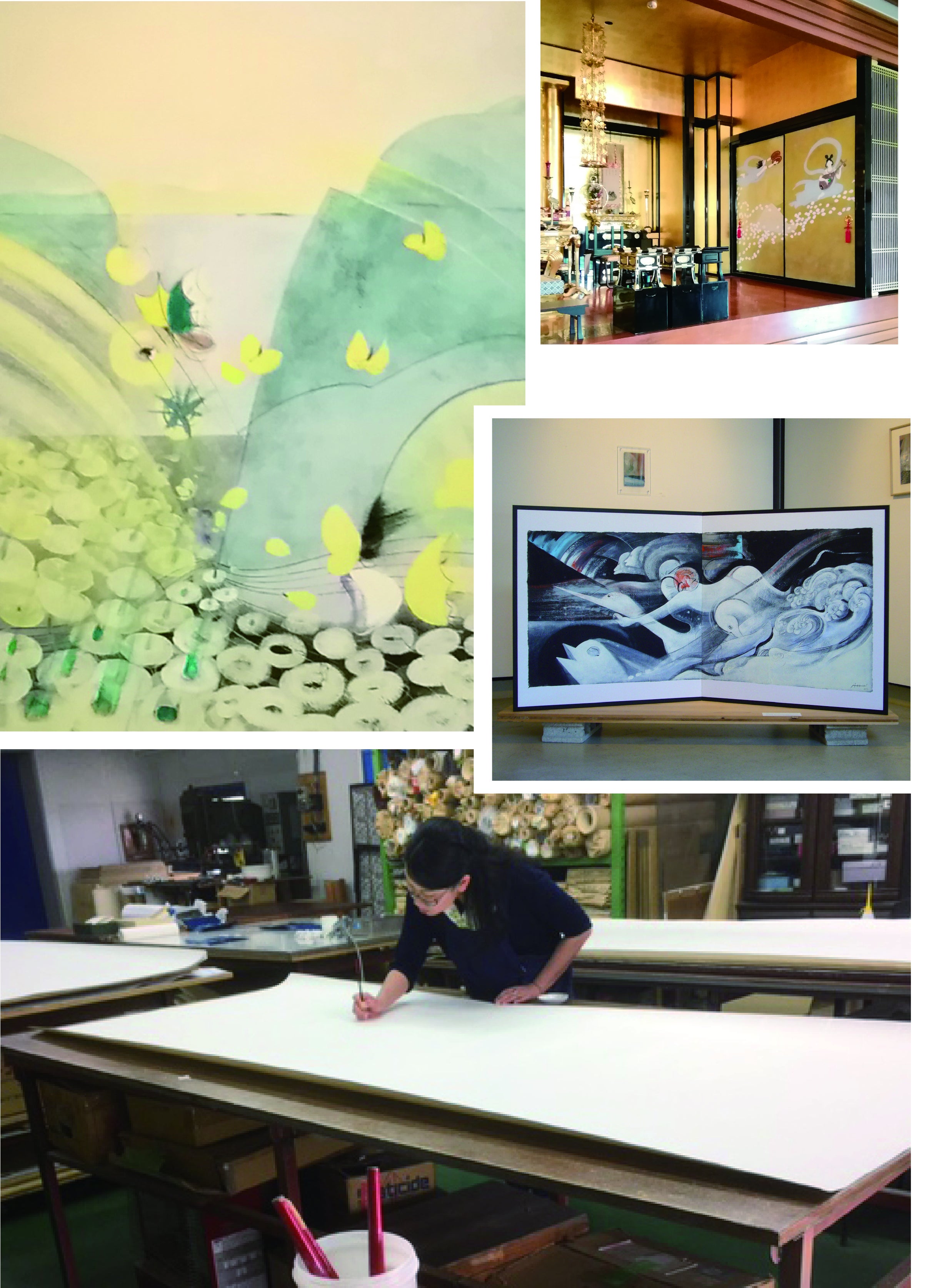 寺院、公共空間の壁画天井画なども手掛ける。