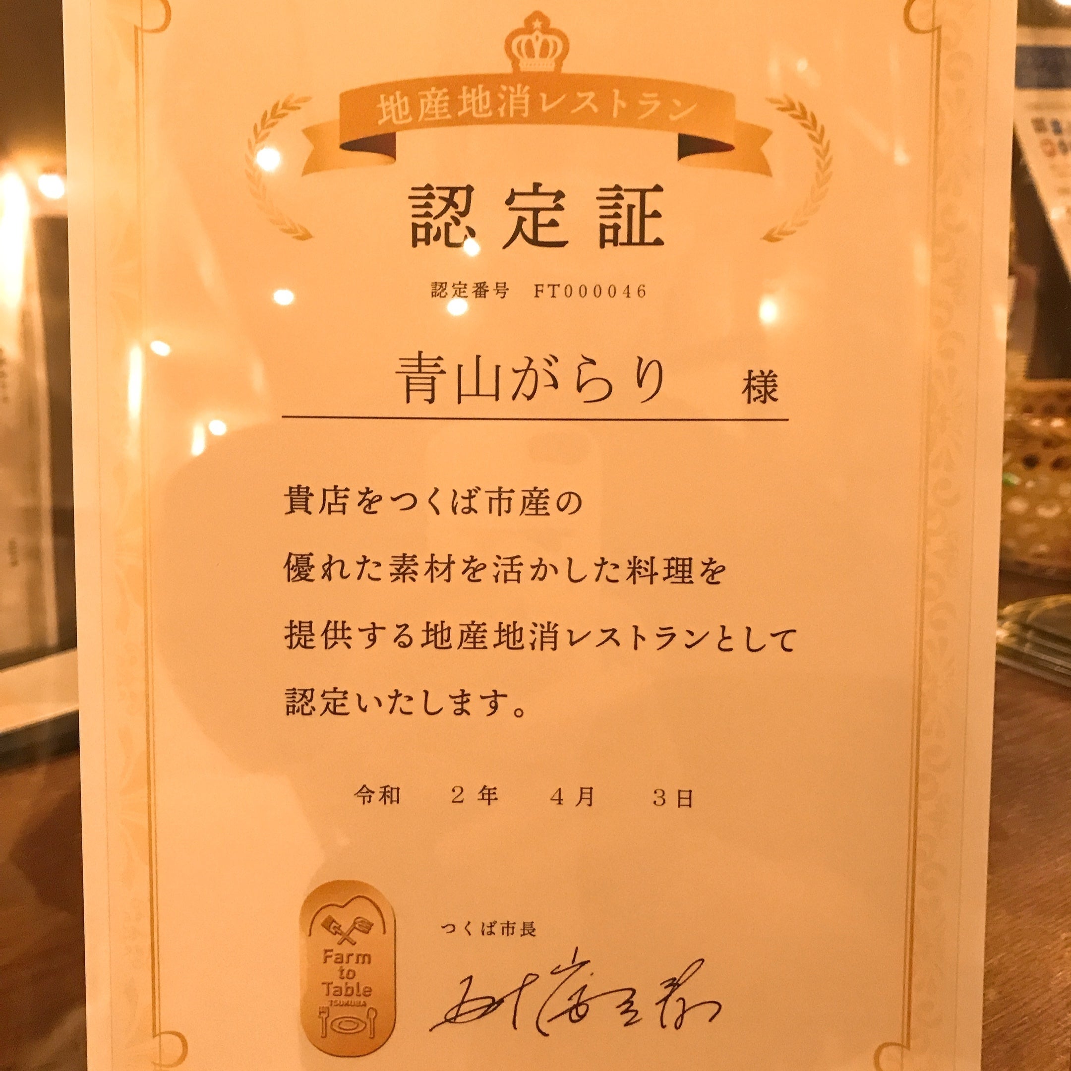 ※この度、つくば市より地産地消レストランの認定を受けました。