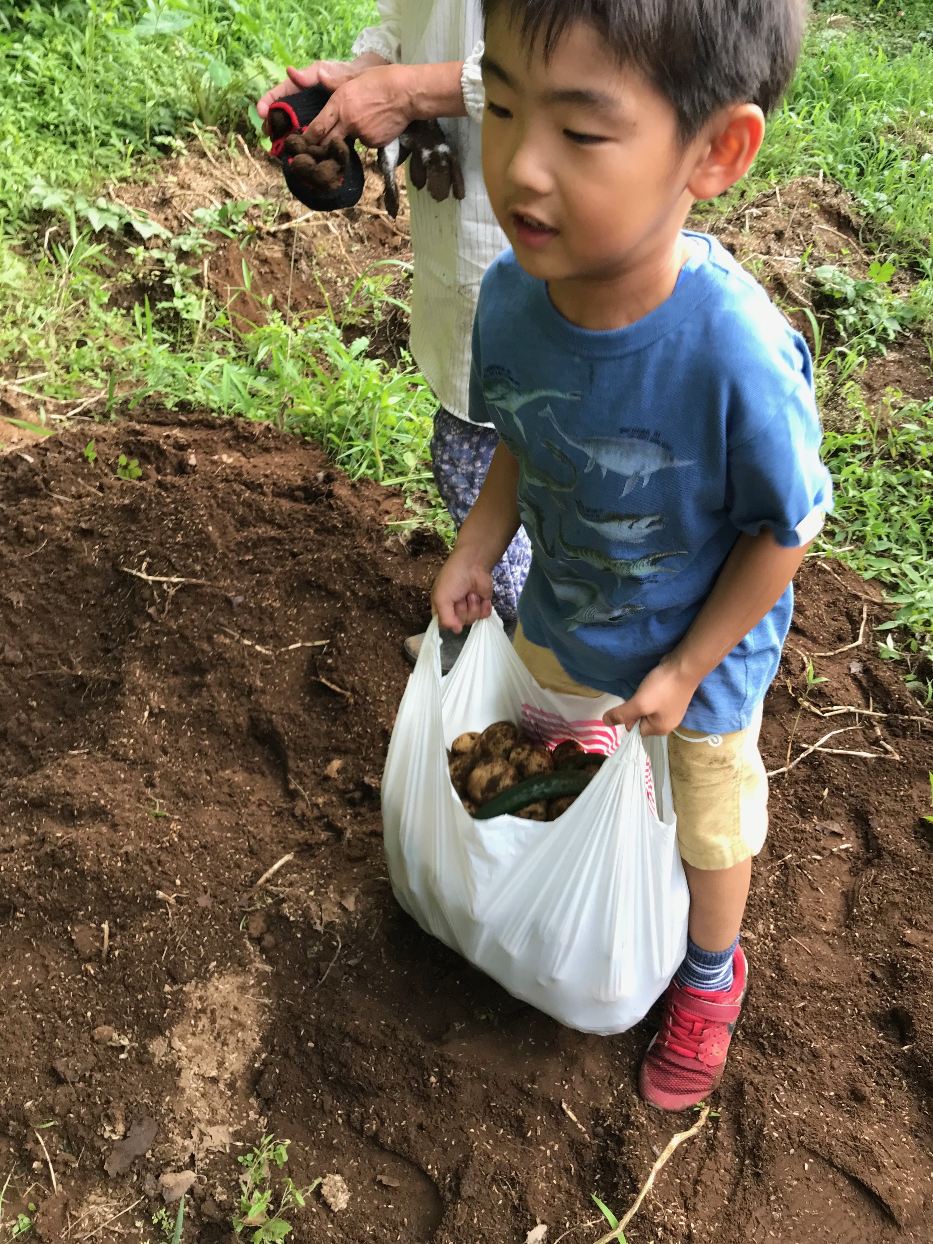 農業体験(アスパラ・ズッキーニ・じゃがいも・ナスの収穫等)