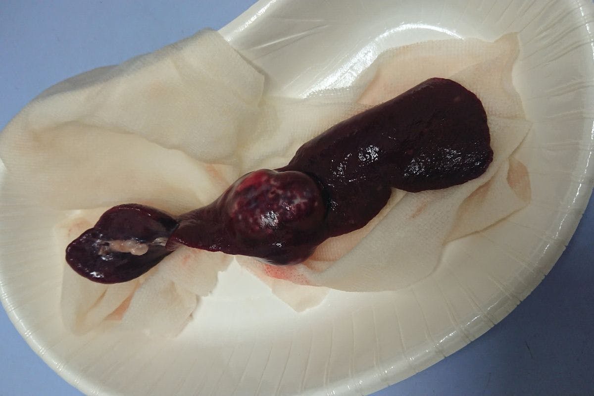 手術で摘出した脾臓です。これで破裂のリスクは回避できました。