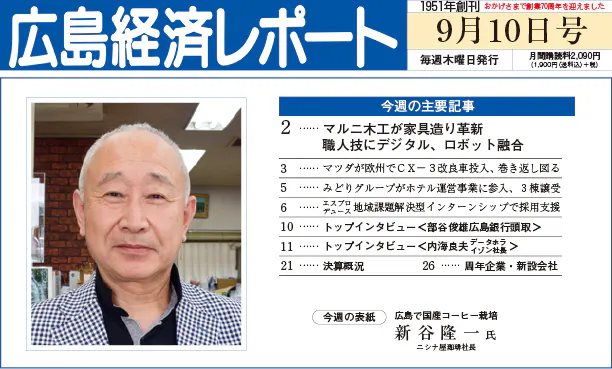 この度、広島経済レポート様の取材を受け、先週の木曜日の9月10日号に記事を掲載していただきました。