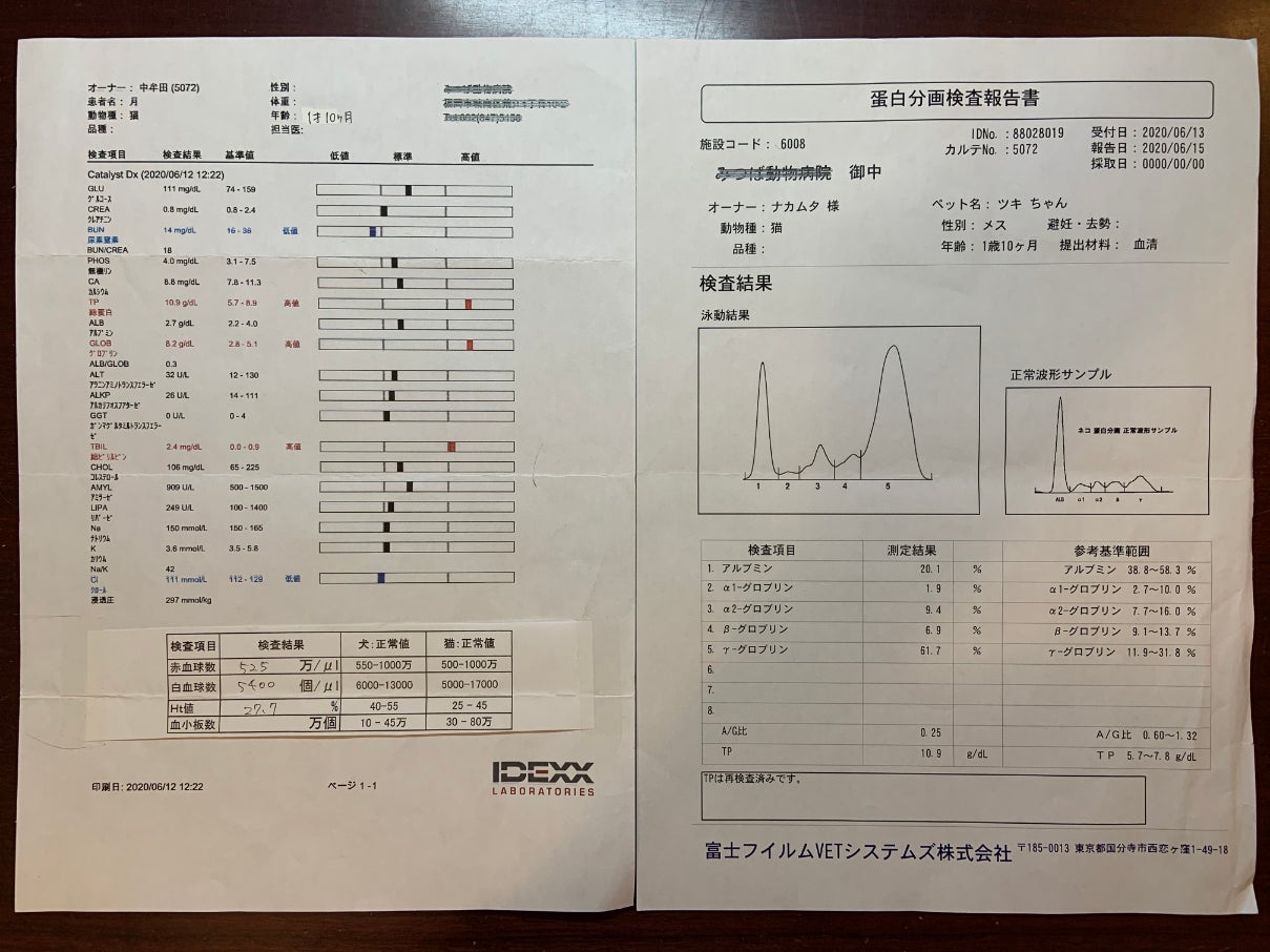 6月12日 猫伝染性腹膜炎(FIP) の血液検査