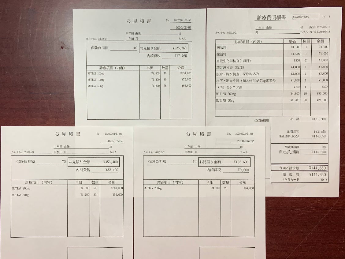 実施中にかかったお薬代や診察の費用については、順次報告していく予定です。