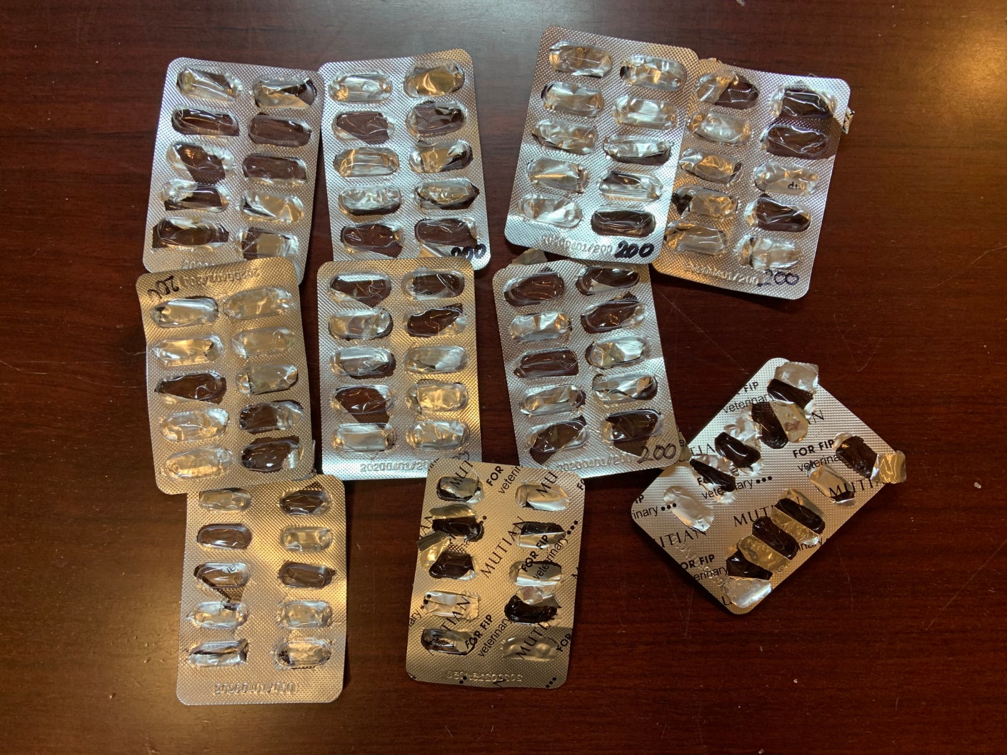 ステロイドの効果はなく、食欲はなくなり水も飲まなくなりました。このころには私たち自身も猫伝染性腹膜炎(FIP) であることを確信しつつあり、とても不安でした。致死率100%の病気であることは知っていました。もうだめかと思いながらもあきらめきれず治療法や薬を探していました。娘がネットで調べてくれ、ある薬の事を知りました。ただこの薬は日本認可外の海外のお薬でした。薬の信憑性も分からない上にその時点では最終的な猫伝染性腹膜炎(FIP) の診断はおりていませんでした。すぐ後に血液検査の結果が出て、やはり猫伝染性腹膜炎(FIP) でした。予期していたことといえ獣医師から、いつ死ぬかわからないと宣告されました。この認可外のお薬のことを話しても知らないとのことで他の病院を紹介され、そのまま月を連れて他の病院に向かいました。紹介された病院でこの薬の事を話しましたが、日本認可外の海外のお薬でその薬は扱っていないとのこと。エコー検査・皮下点滴・皮下注射をしてもらいサプリメントをもらって帰りました。