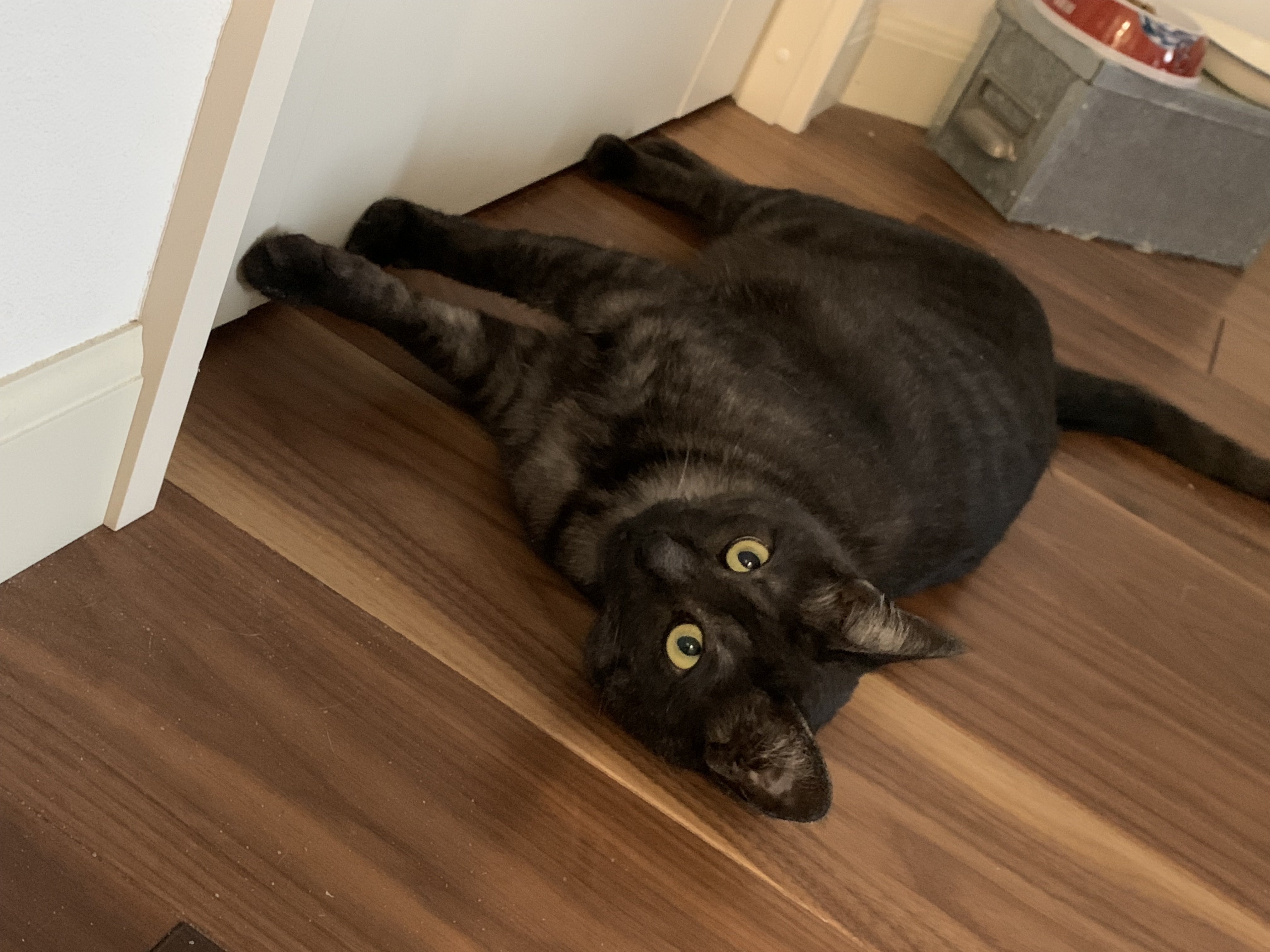 遊んでーの時は、下の写真のように、足元にきて横になって手足をバタバタ。とても可愛いです。