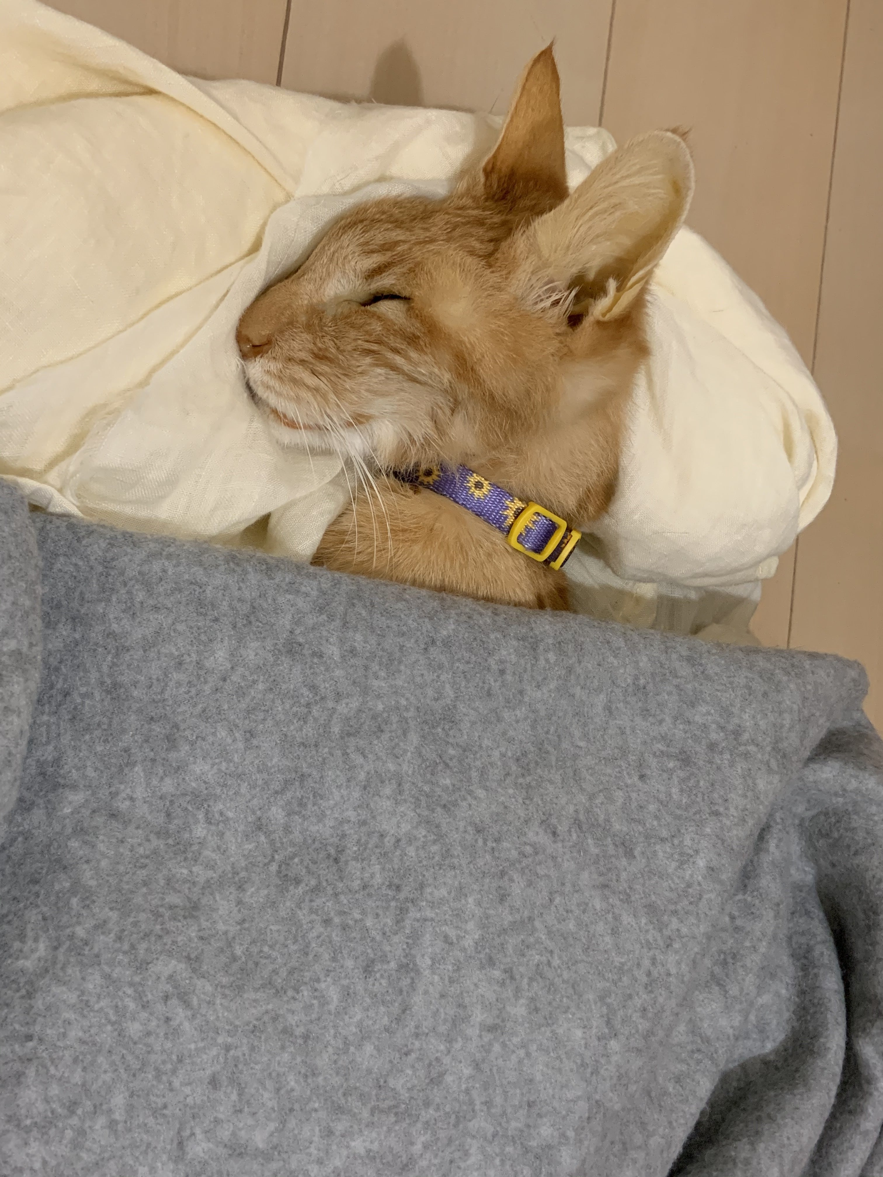 本日の月と太ちゃん子供に無理やり招き猫させられてご機嫌斜めな月の写真です。体をみておわかりのようにますます丸くなってきています。まだステロイドの投与が5日間ほどありますが、経過観察のところ問題なしです。あきらめなくて本当によかったと思います。実は余命1週間と言われた時に安楽死の事が浮かびました。毎日つらい注射や点滴、血液検査、臆病な月にとってはつらいことでしかなかったので、そんなつらい思いをさせるならいっそのことと思いました。太ちゃんの時もそうでした。あんなに骨と皮だけになってしまって助かるわけないと正直思いました。病院に連れて行ったときに、もう難しいのでお家で看取ってあげてもと先生に言われました。 でも楽にさせてあげることもあきらめることもできませんでした。息をするのもやっとだったはずなのに、お手々握ってあげると握り返して、なでてあげると尻尾を振ってくれる強くて優しい向日葵のような子でした。太ちゃんは最後まで生きることをあきらめず、最後まで本当に立派でした。 私が保護しようとするまいとそれは最後まで変わることはなかったと思います。体もひまわり色で元気な時は立派な茶トラだった太ちゃんはずっと最後まで頑張って、私には頑張ったよって微笑んでいるようにさえみえました。お空へ逝ってしまった太(たい)ちゃんにぴったりの曲があったのでそれを贈りたいです。秦 基博 - 「ひまわりの約束」https://www.youtube.com/watch?v=rKsQ-3N-Bks感謝