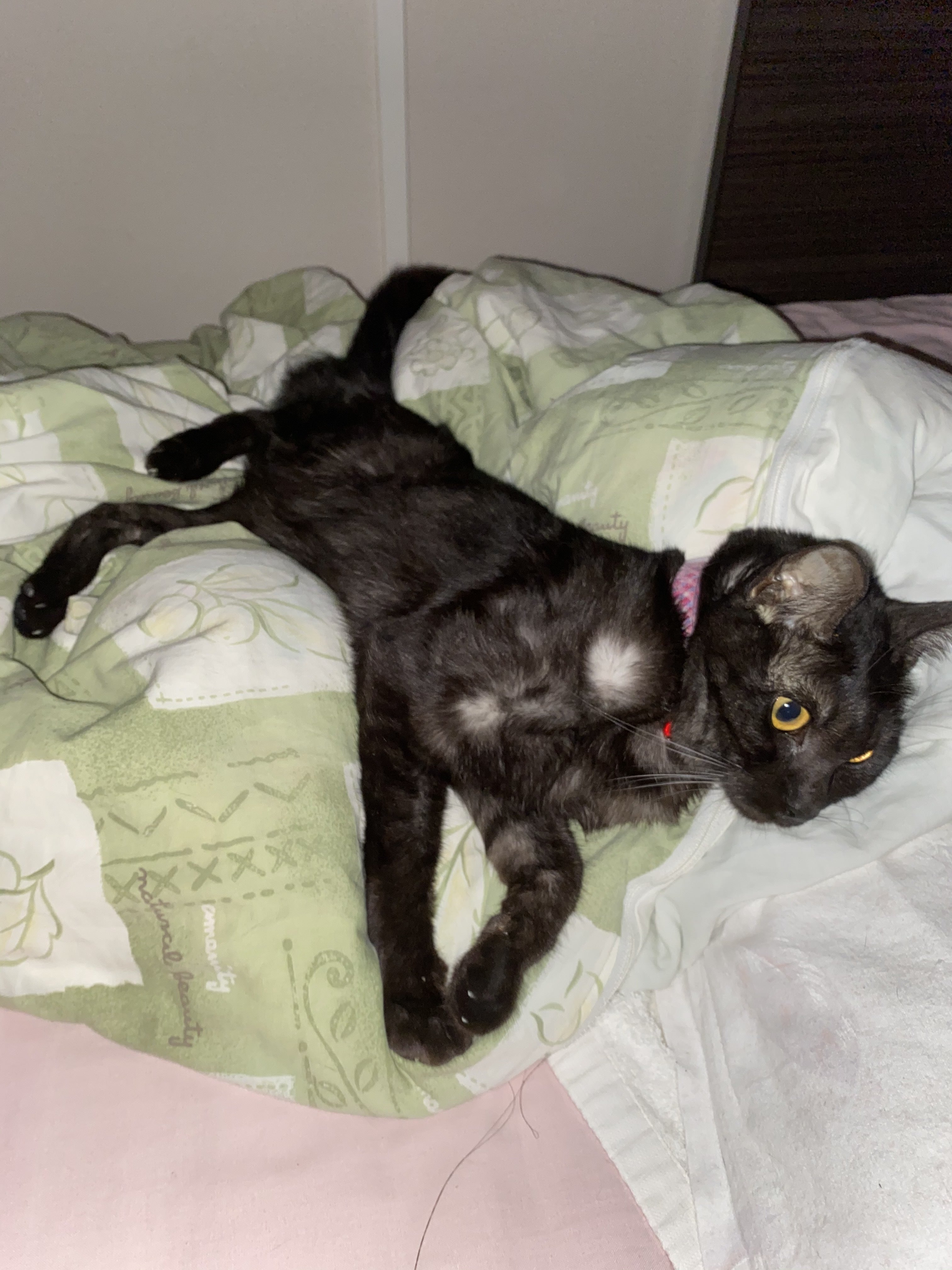 月は2018年10月に猫の保護団体から家族として迎え入れました。保護猫なので生年月日がわからず、末広がりの意味を込めて、8月8日に決めました。はじめは警戒心が強く臆病で、迎え入れてわかったことですが脱腸もあり、体の弱い子でした。ですがツンデレで他人には全くなつかないのに、私達家族にはなついてくれて(当たり前ですが)膝の上に乗ったり、毎晩私のベットにきて一緒に寝てくれるようになりました。