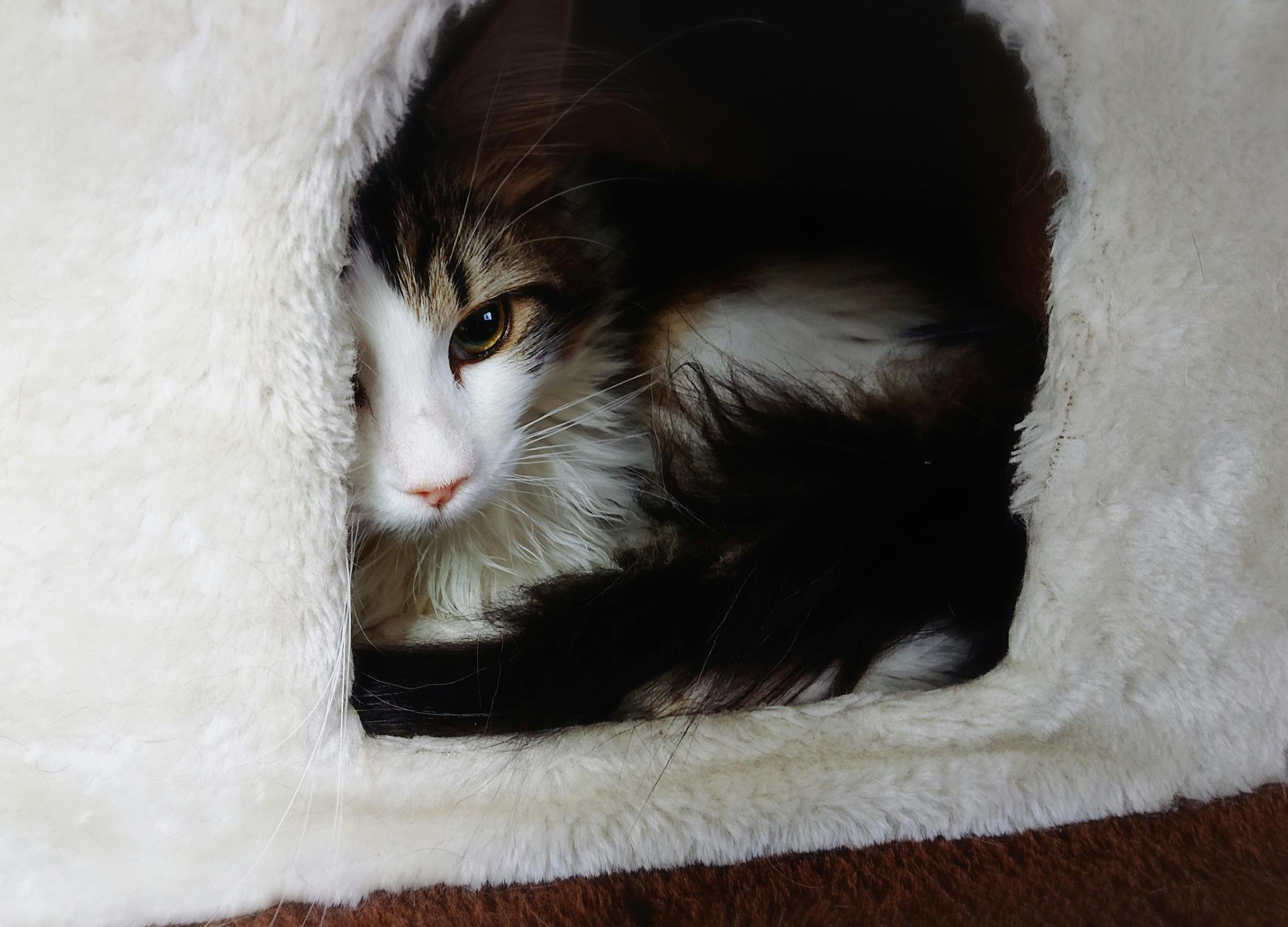 昨日の夜からキャットタワーでずっと蹲ったまま一歩も動かず、大好きなチュールも食べず、水も飲みません。