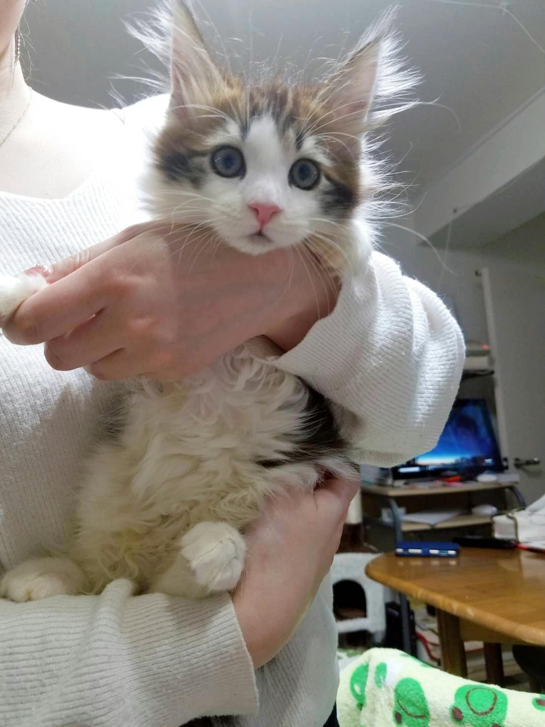 そんな状態がしばらく続き、元々登録していたブリーダーサイトの新着メールが私の元に届きました。そこに映っていた亡くなった愛猫に良く似た子猫に心を動かされ、誘われるままその子の元に足を運びました。そして元気で人懐っこい姿に、ペットロスから抜け出すきっかけを貰い、ブリーダーさんから譲って頂き、名前は家族一致で、亡くなった陽輝(はるき)から一文字貰い、陽向(ひなた)と名付けました。