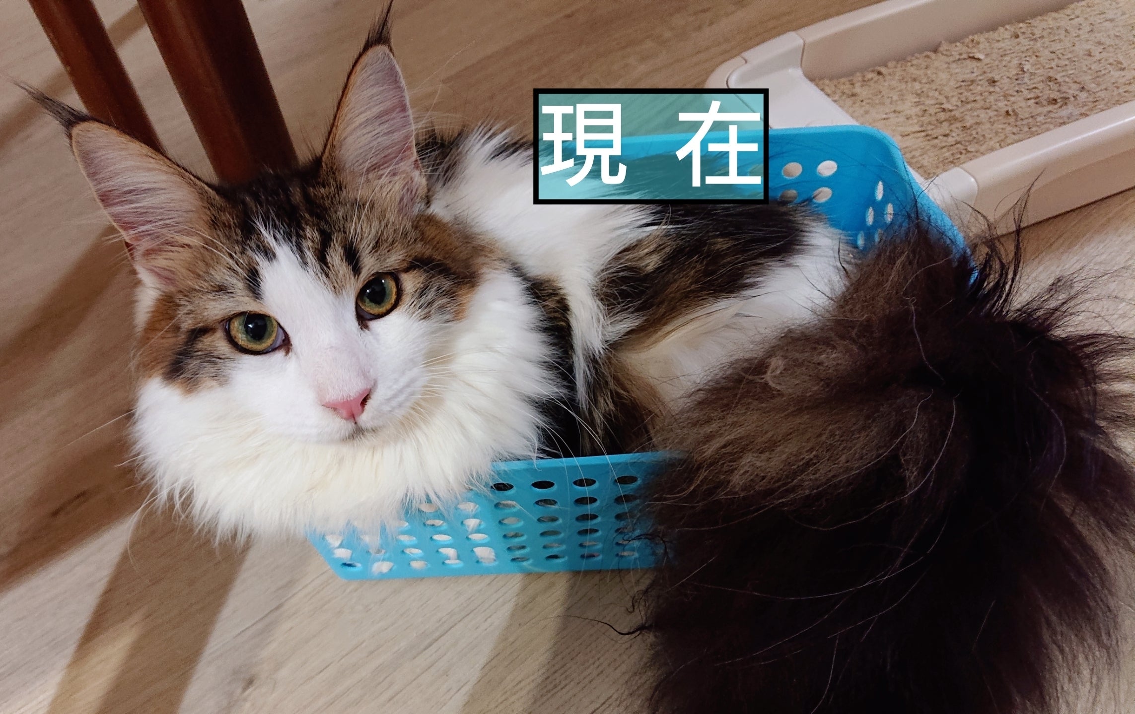 来た当初は青いカゴにすっぽり入る大きさ。
