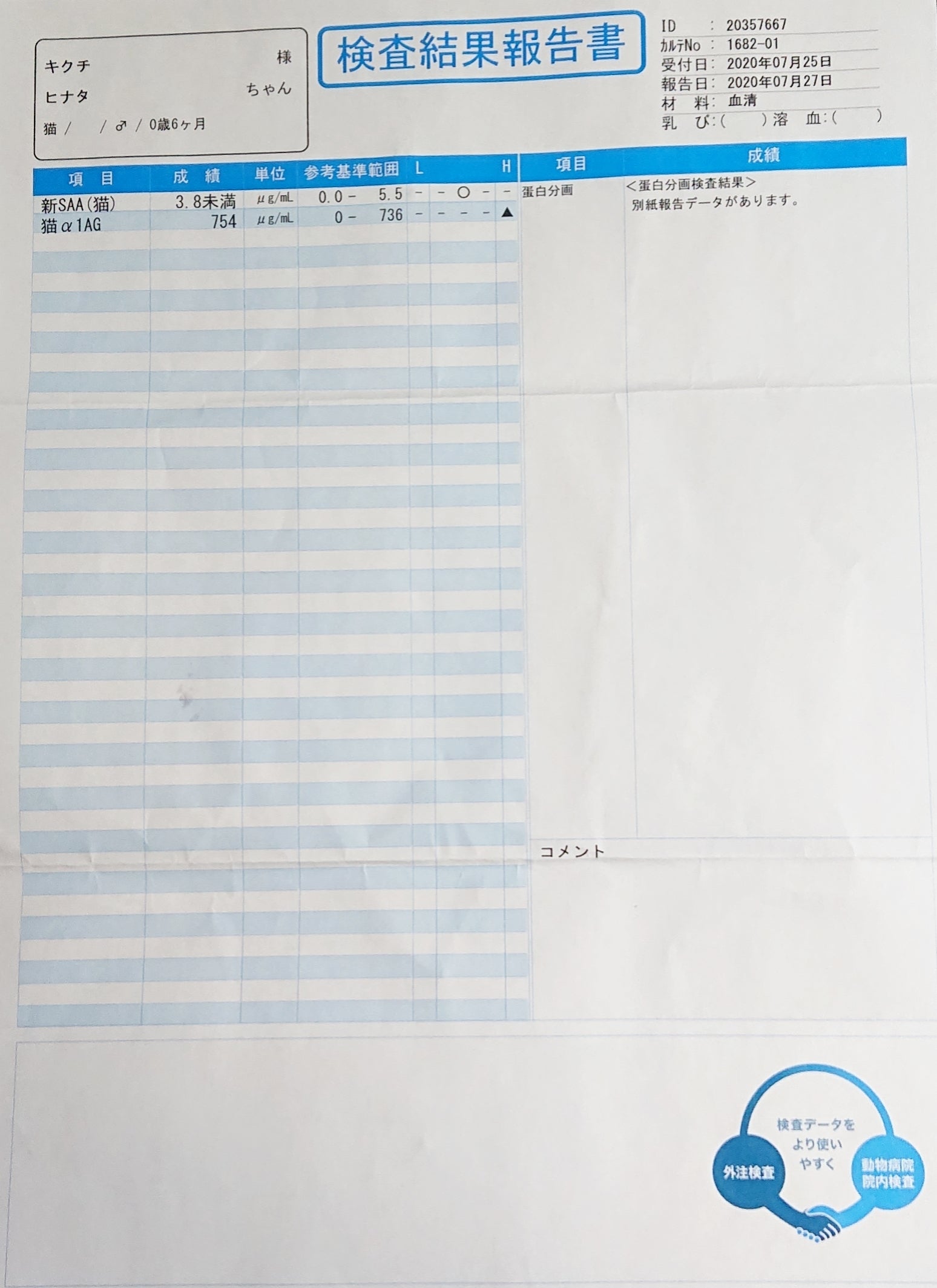 その際に前回の検診で渡され忘れていた外注検査の結果も貰いました。