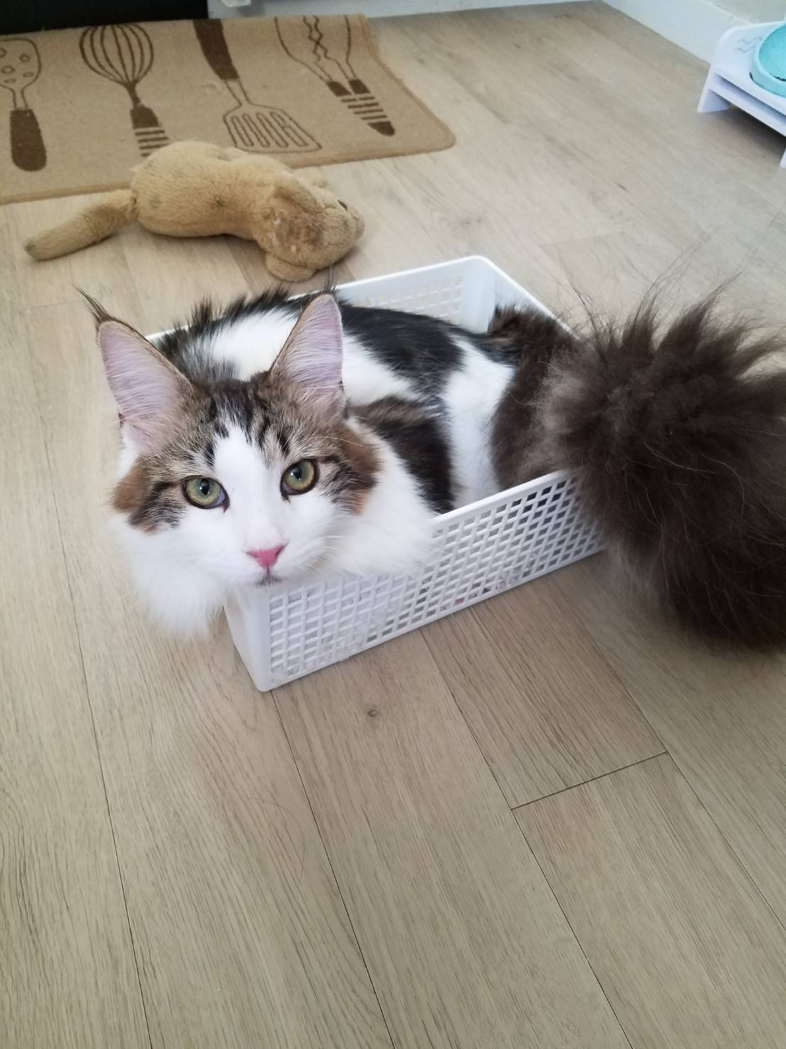 青い籠がパンパンな陽向を見兼ね